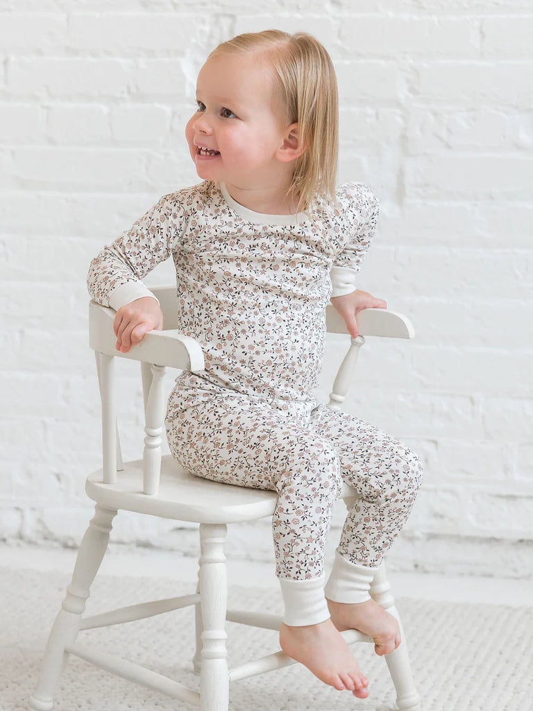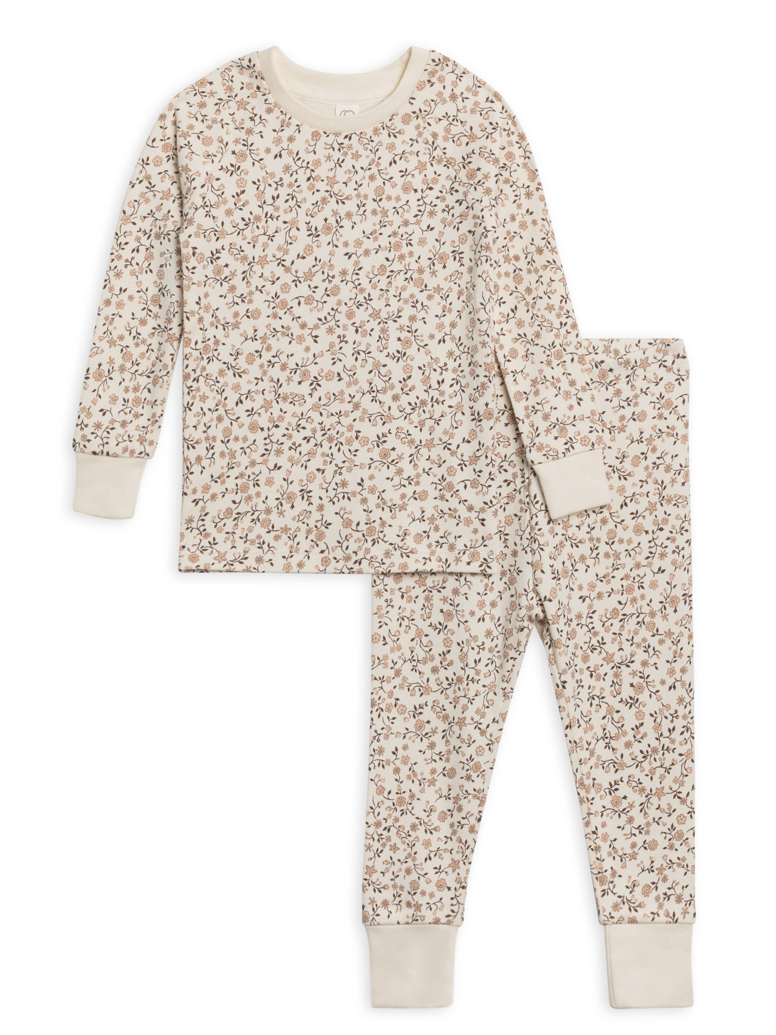 2 PIECE LONG SLEEVE JAMMIE SET PRIMROSE FLORAL / CHESTNUT - COLORED ORGANICS