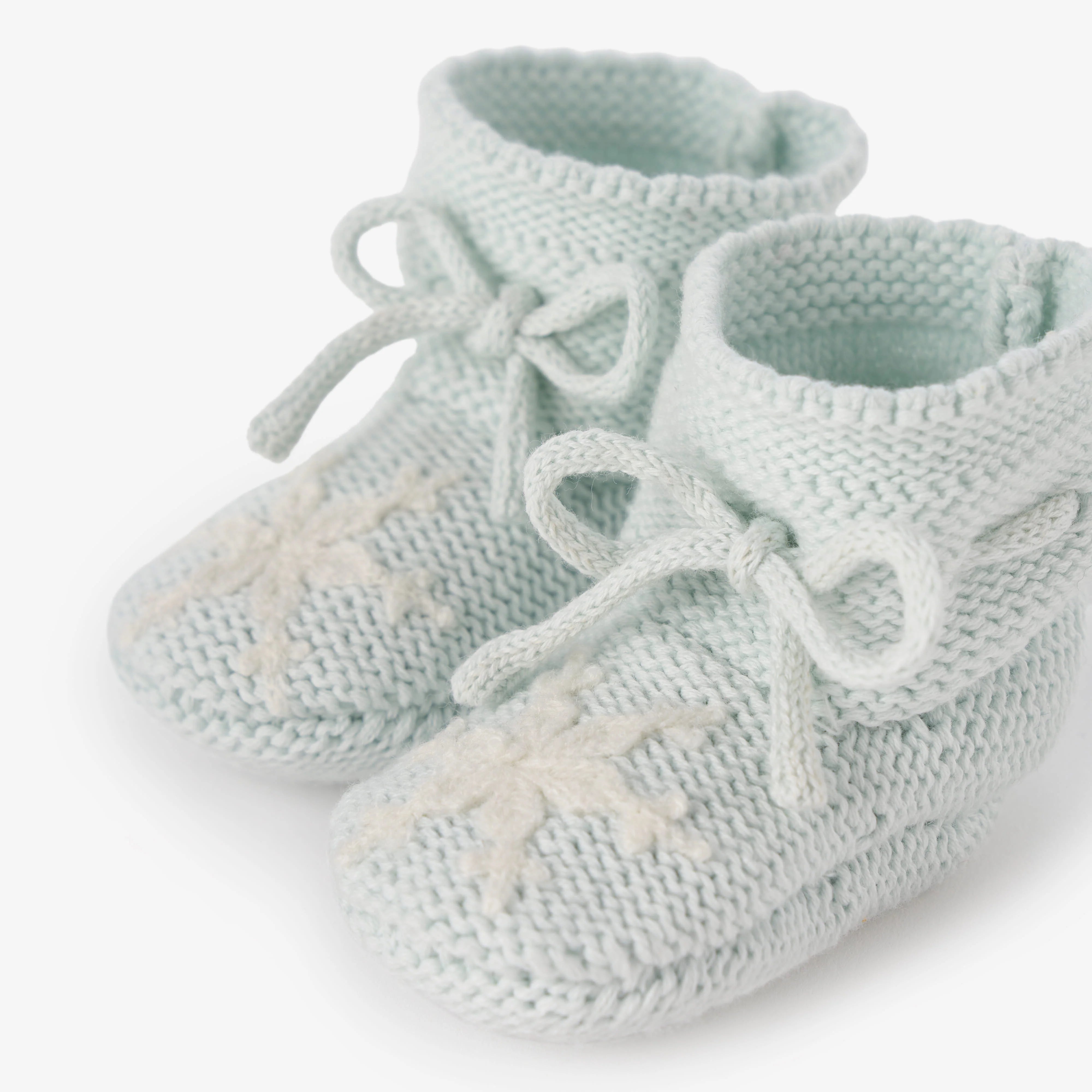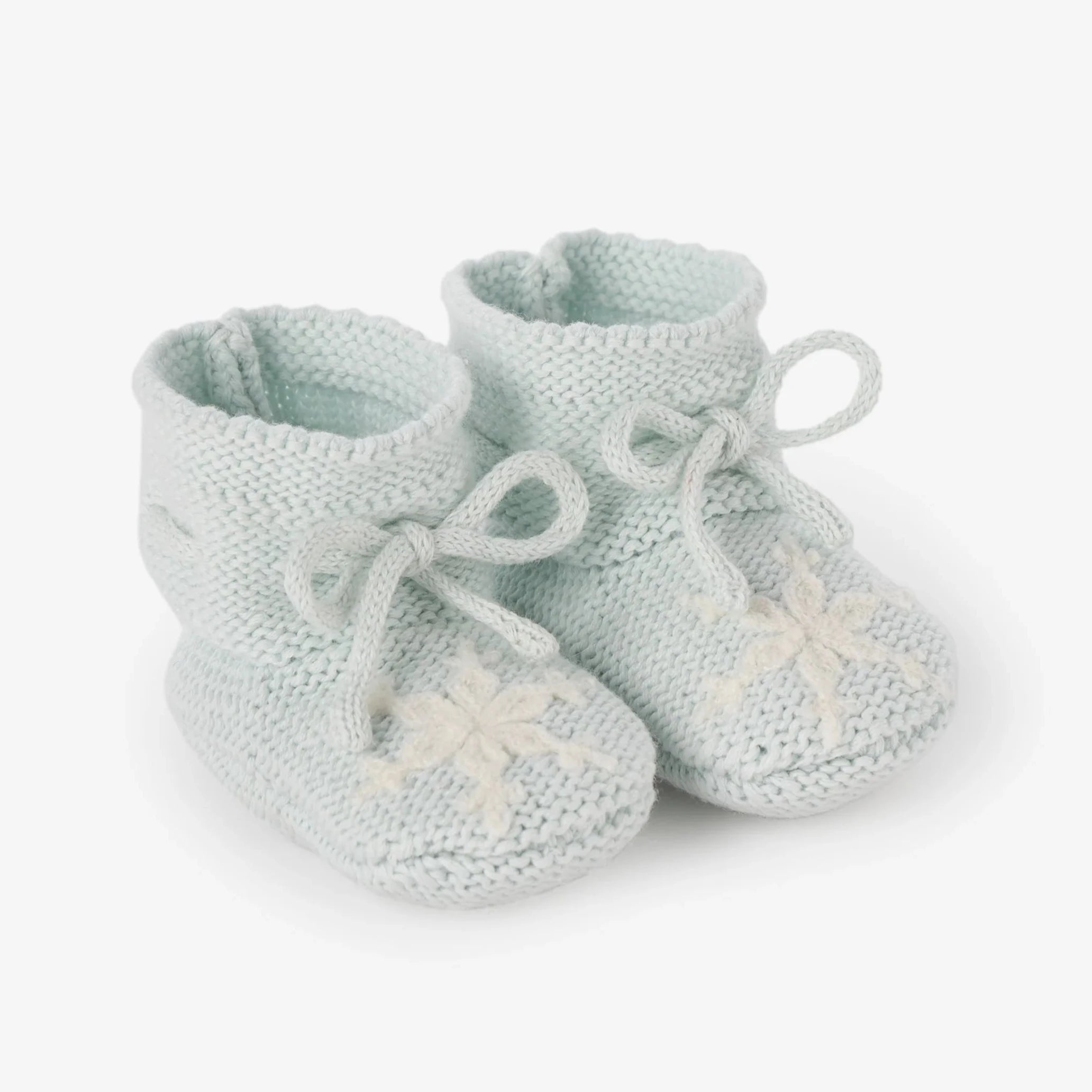 PALE BLUE SNOWFLAKE GARTER KNIT BABY BOOTIES - ELEGANT BABY