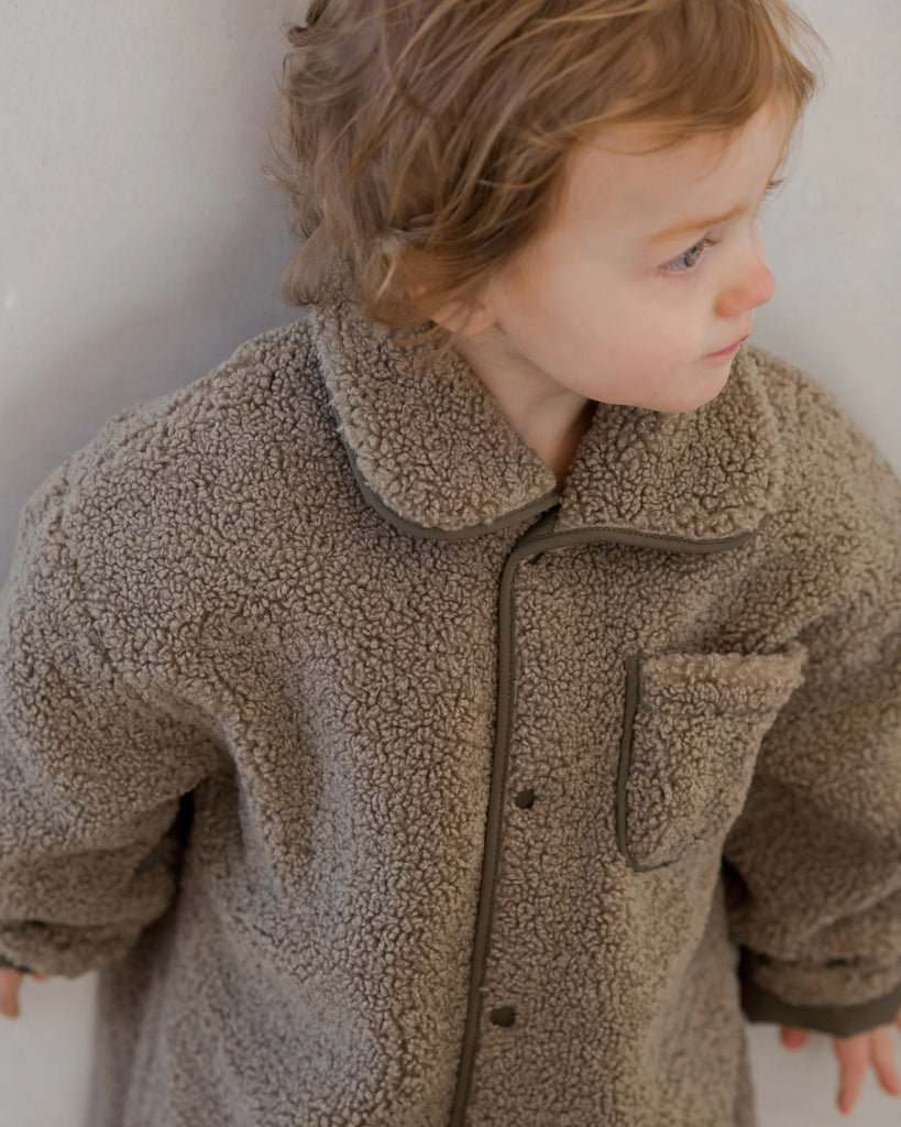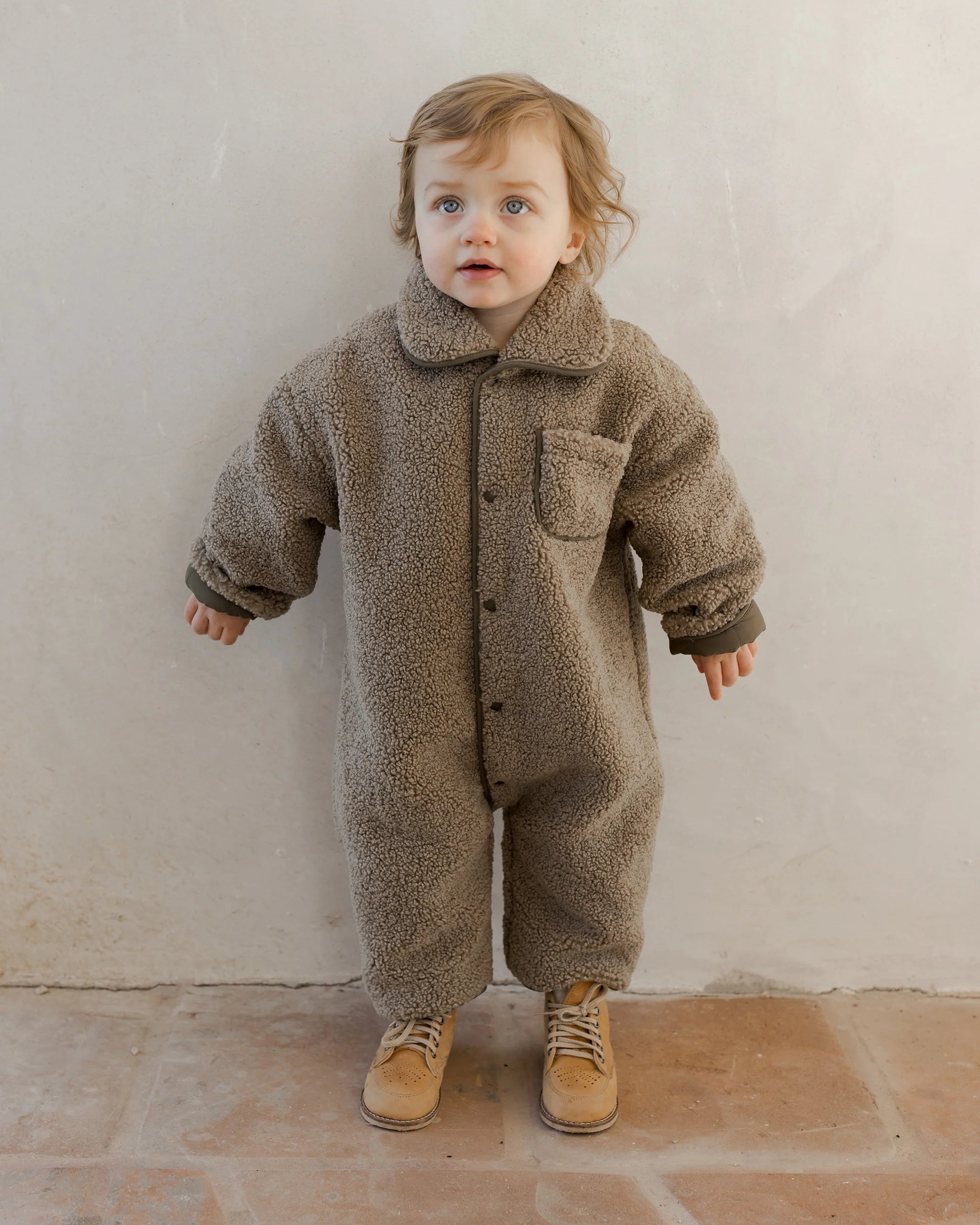 Keep your little ones warm and cozy in this shearling jumpsuit. Front snap buttons for easy changes and a soft liner on the inside.