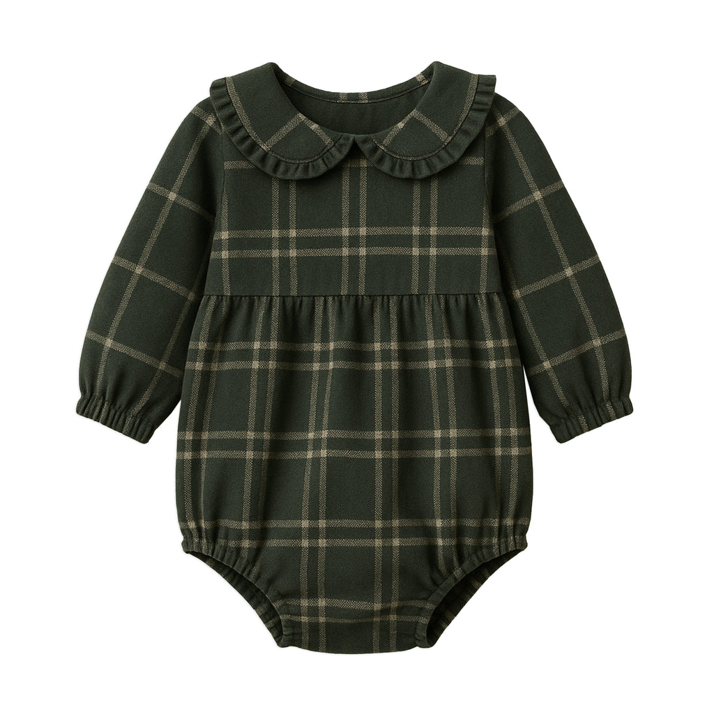 ORGANIC BABY AVEN FLANNEL BUBBLE COLLARED ROMPER