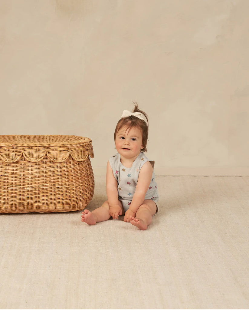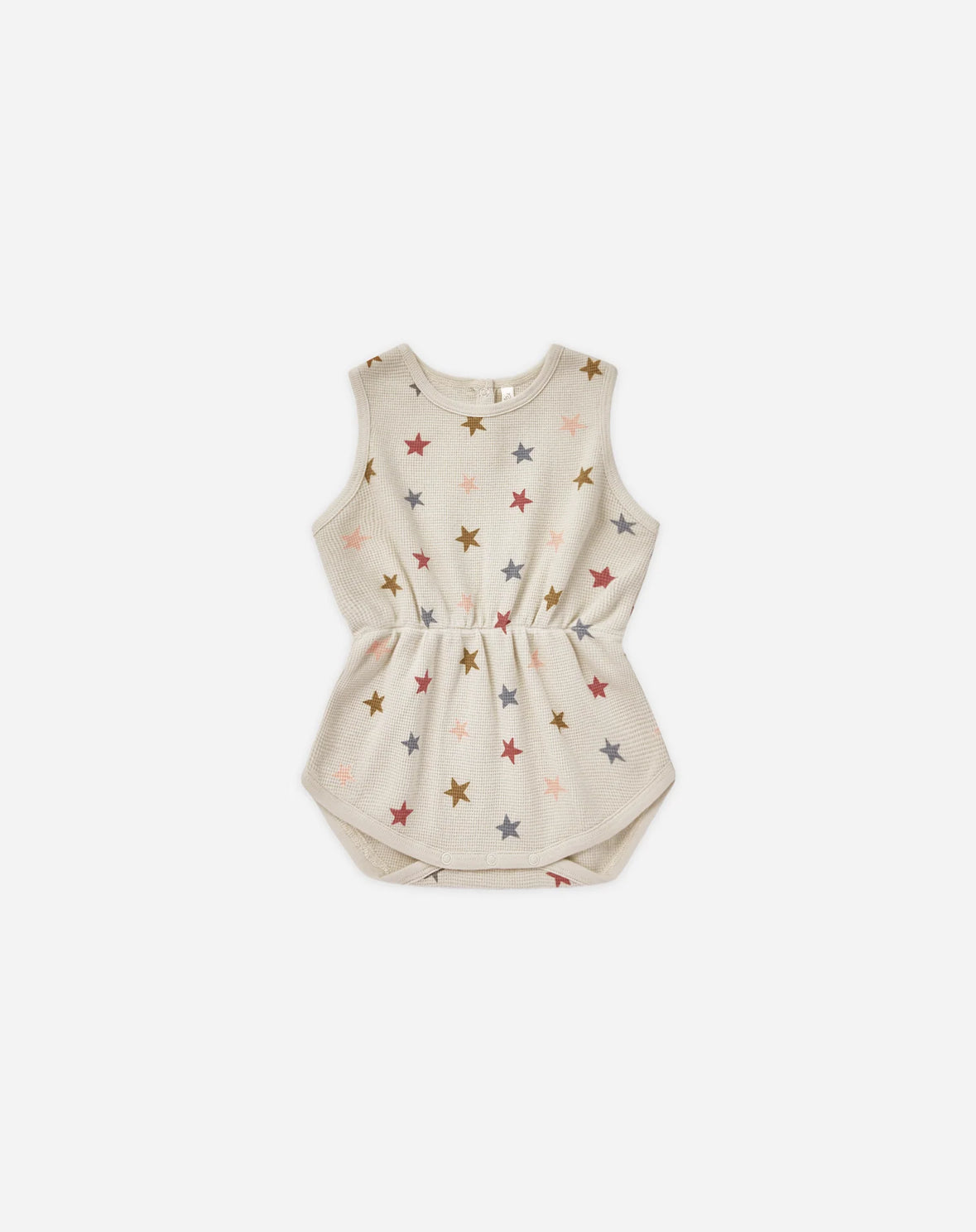 A summer classic, this sleeveless playsuit features a cinched waist, and snaps along bottom for easy changes.