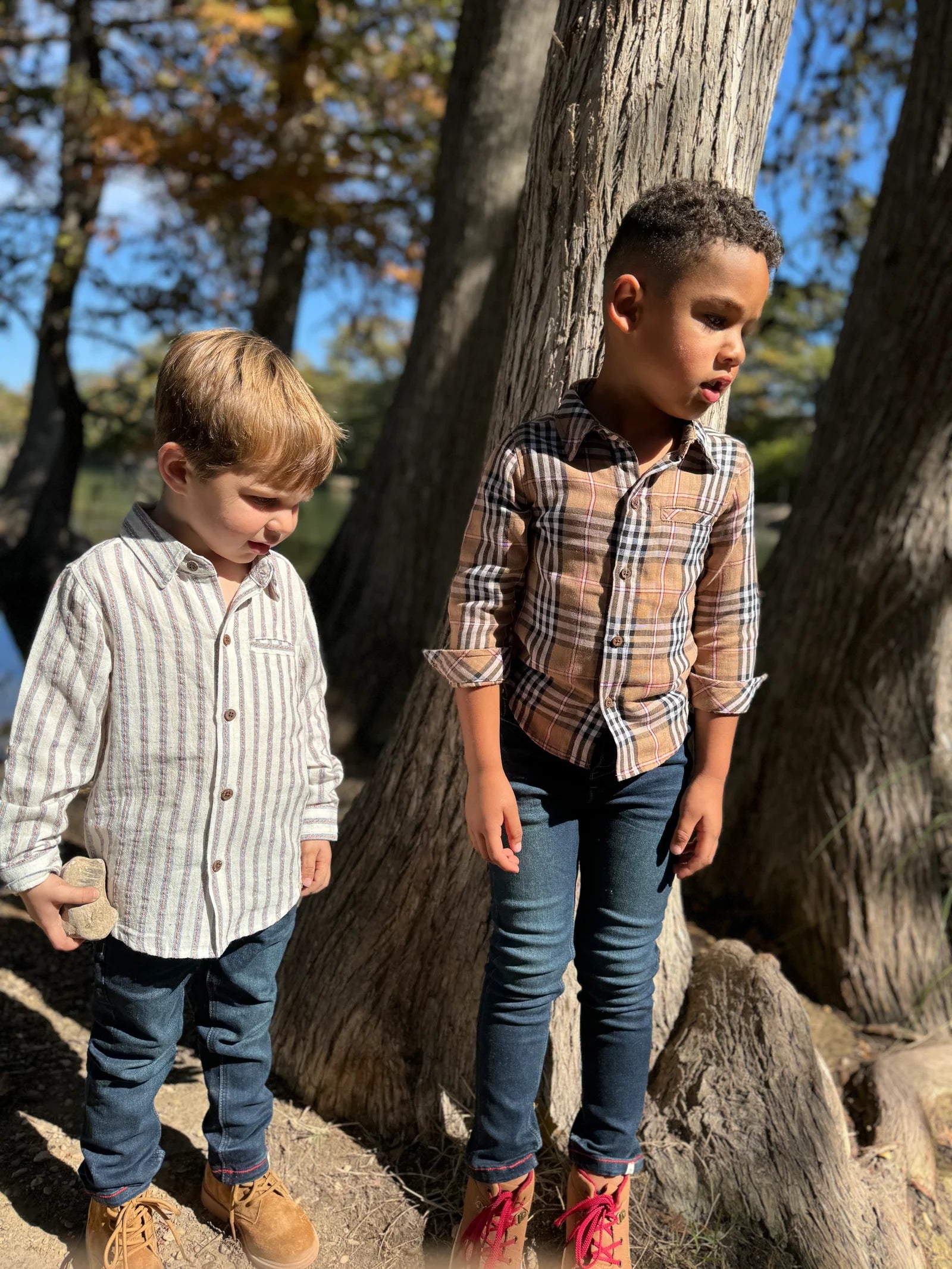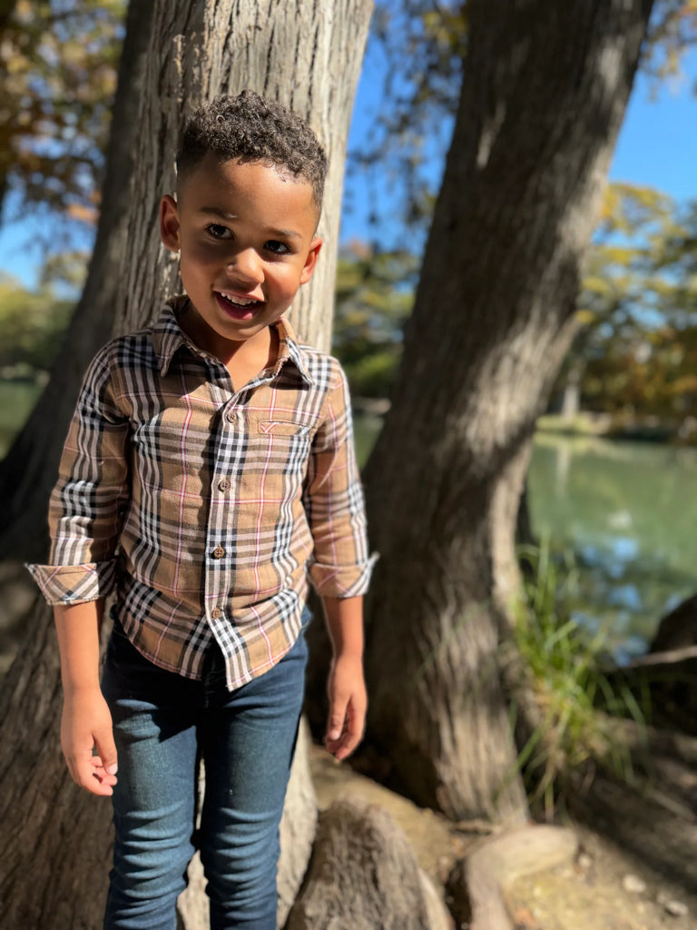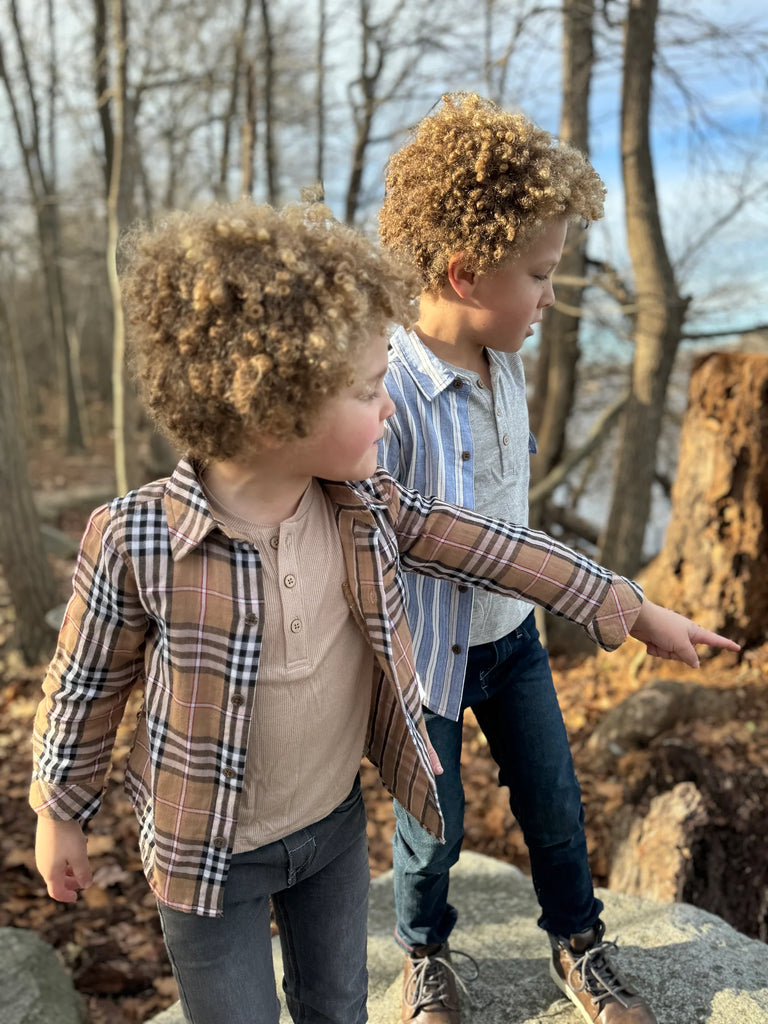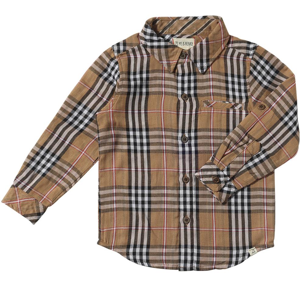 BROWN/BLACK/RED PLAID ATWOOD WOVEN SHIRT - ME & HENRY