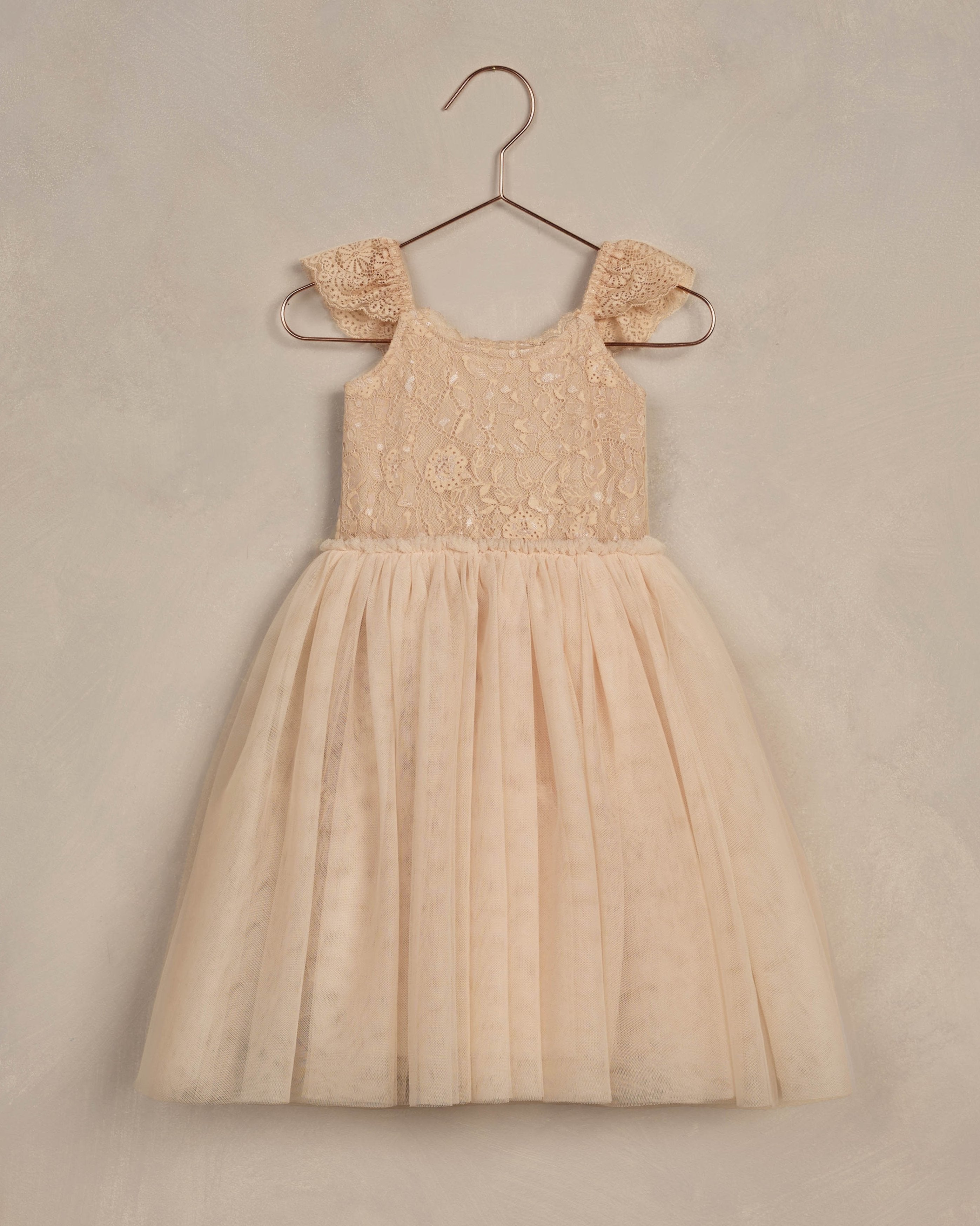 Made with your little flower girl in mind, this dress is as pretty as it is classic. The bodice features a detailed lace overlay on a soft cotton jersey liner. Finished with flutter lace sleeves and a full skirt crafted in layers of tulle. The dress is fully lined in soft cotton jersey making the dress comfortable for your little one at any event.