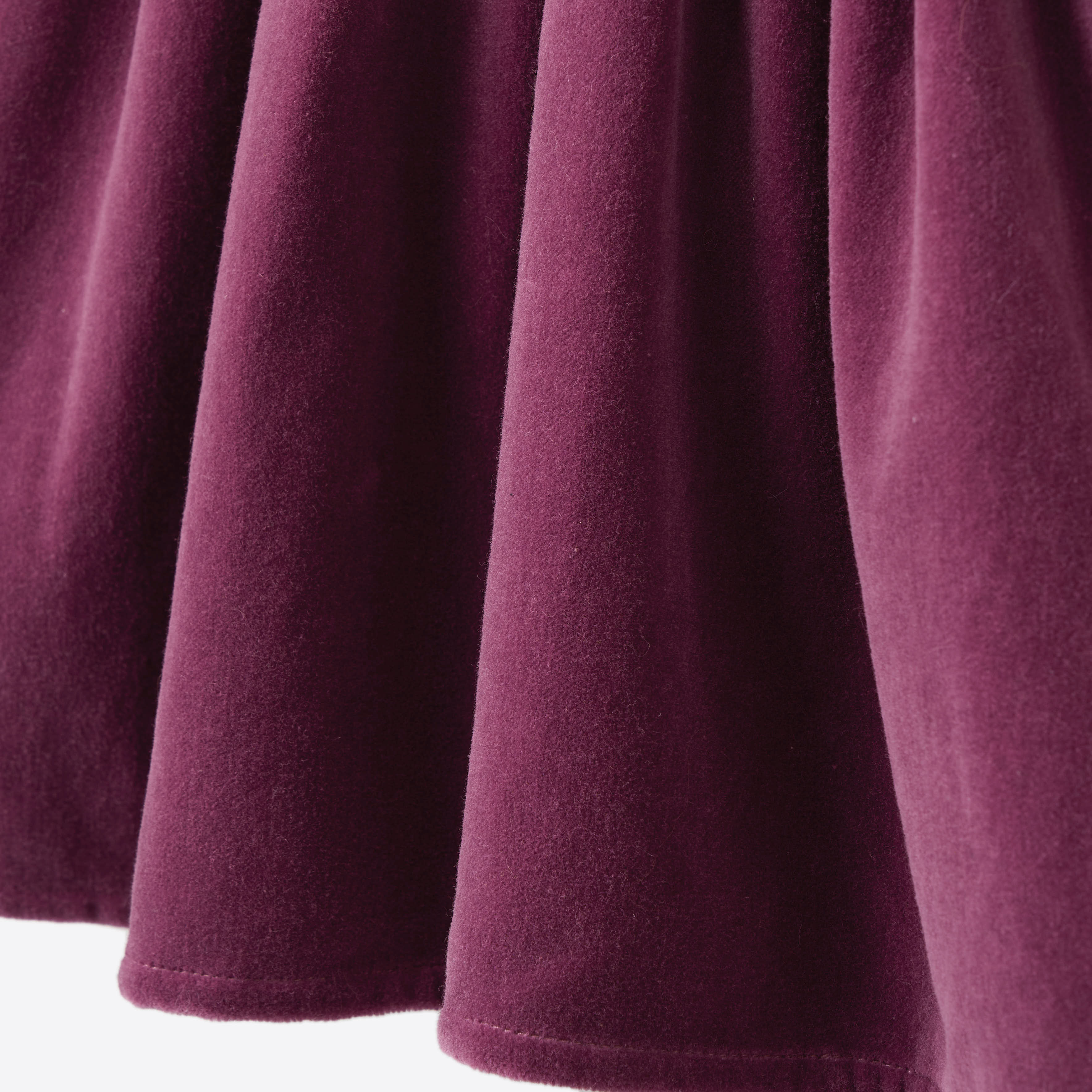 Make holiday moments magical with the Dark Violet Velvet Ruffle Sleeve Dress, featuring elegant velvet ribbon and bow details. This A-line dress, with its delicate ruffle sleeves, is perfect for dressy occasions, offering a blend of classic style and festive charm. Ideal for your little one's special celebrations.