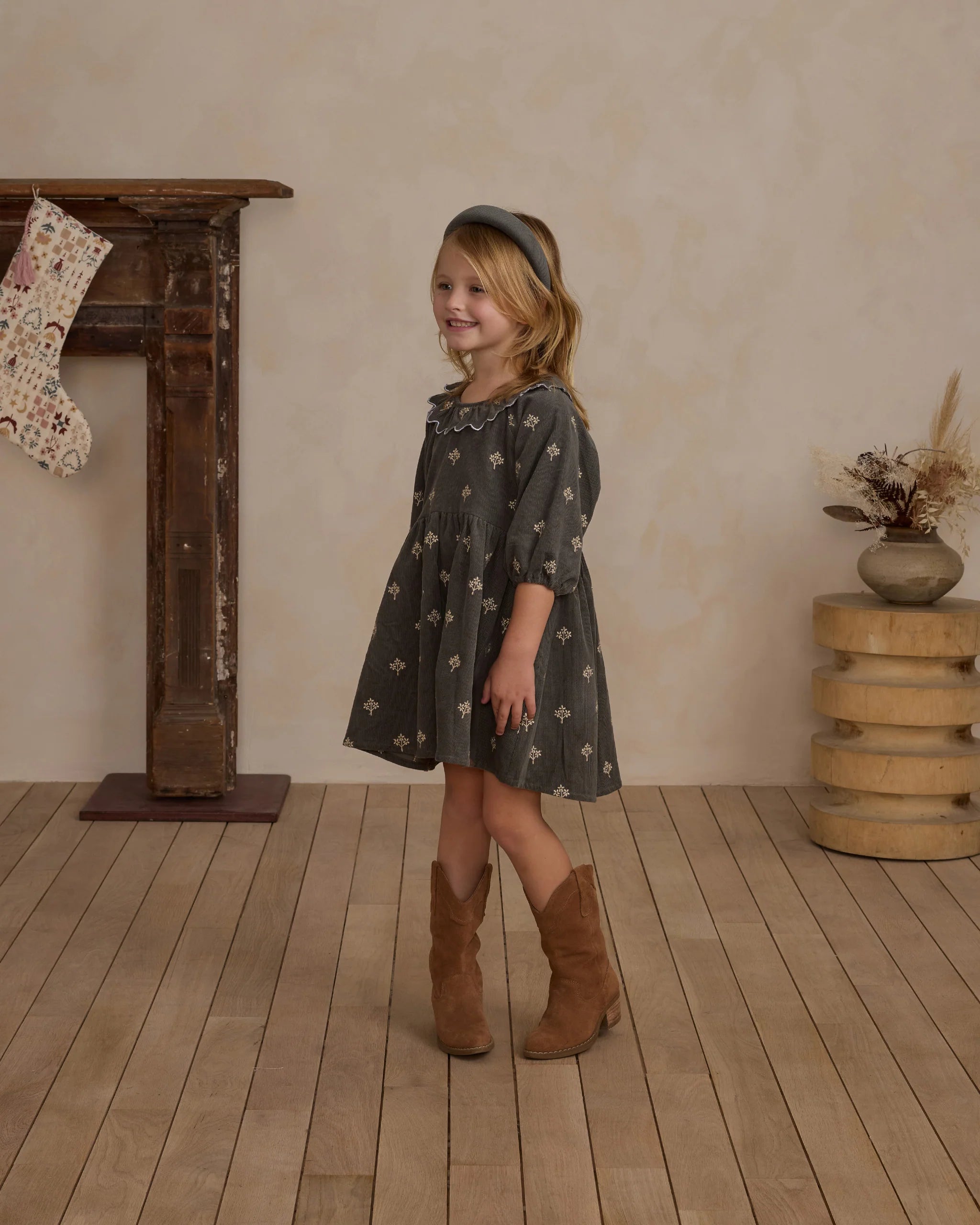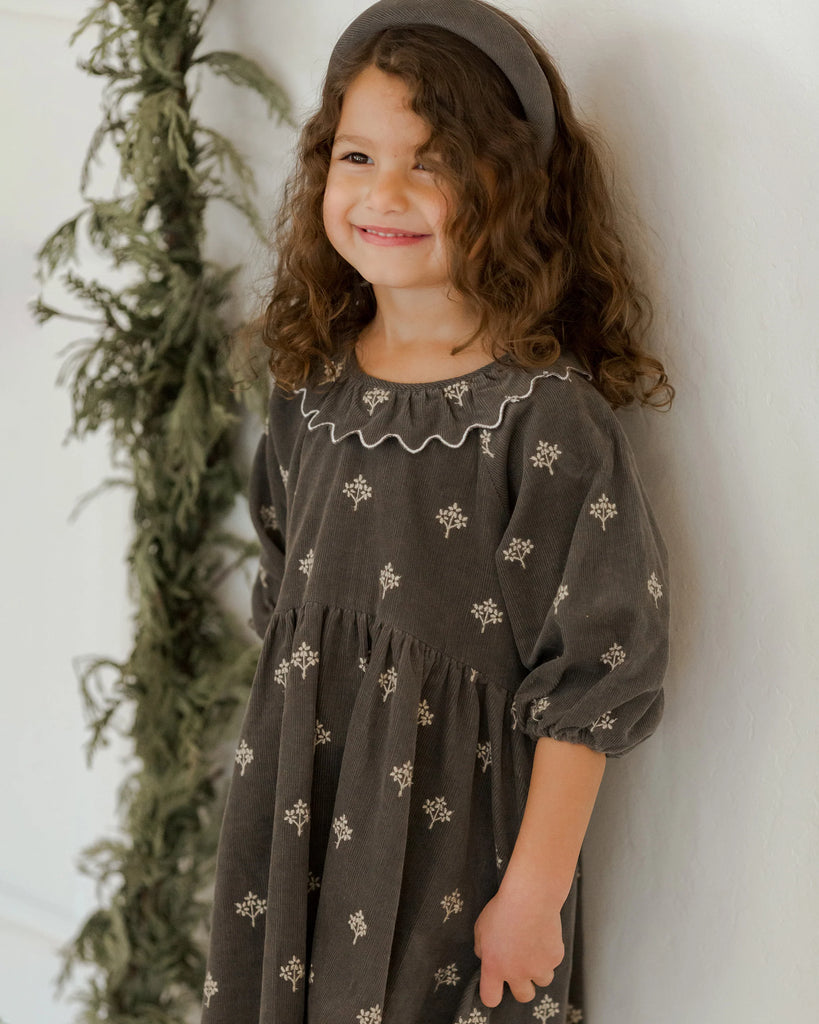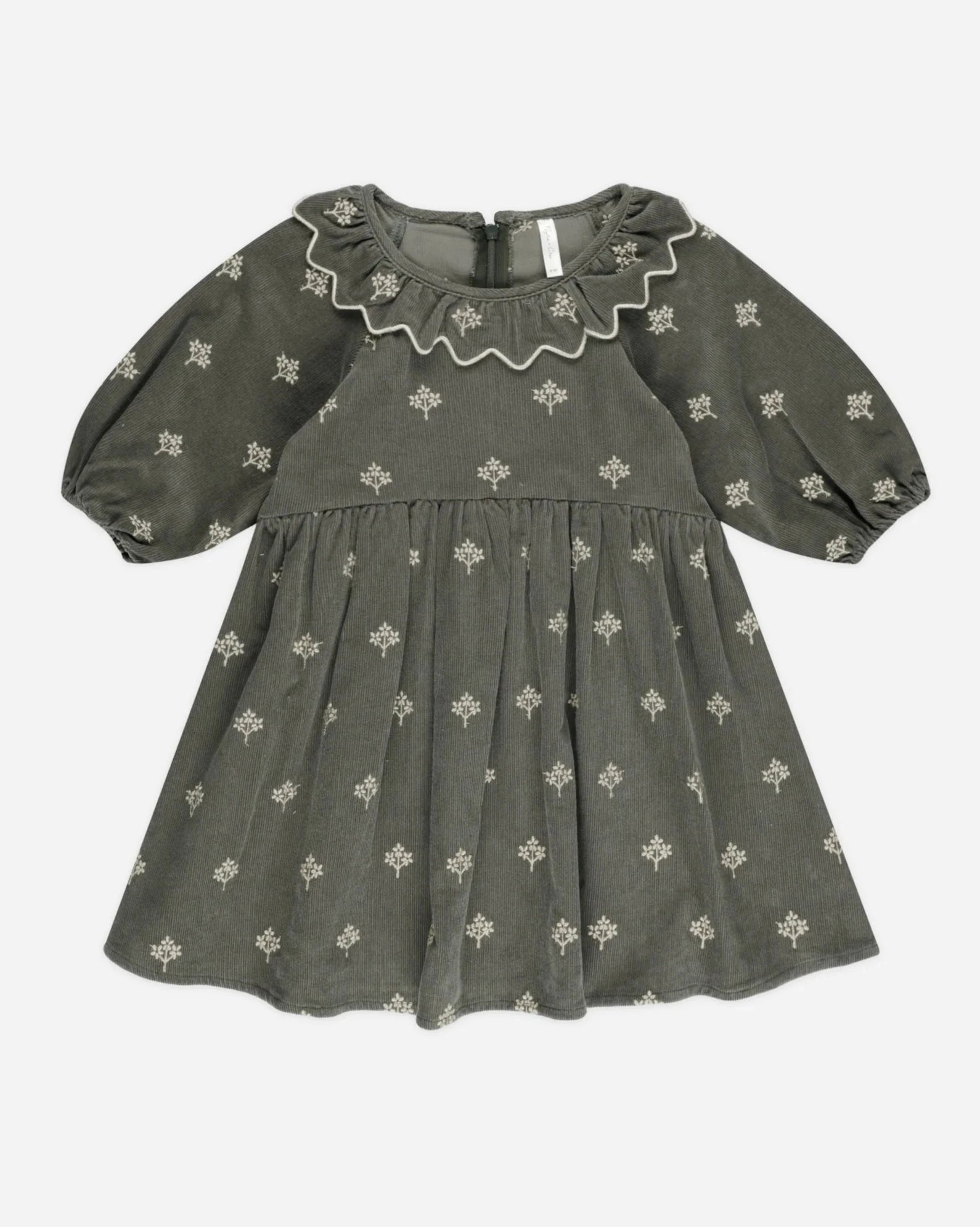 This Freya Dress dress is made of fine corduroy with playful ruffle collar and balloon sleeves. Zipper back closure.