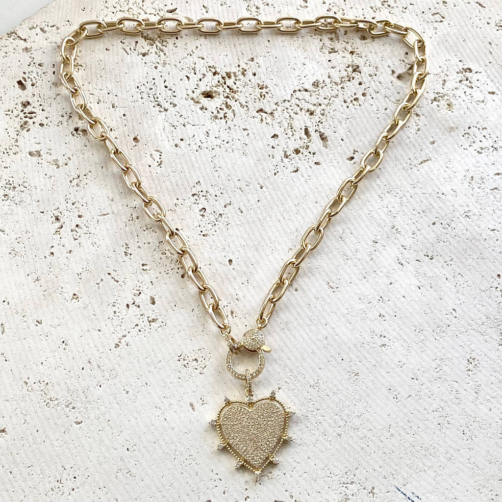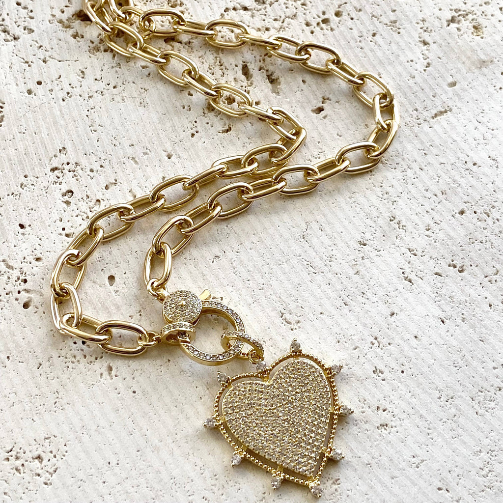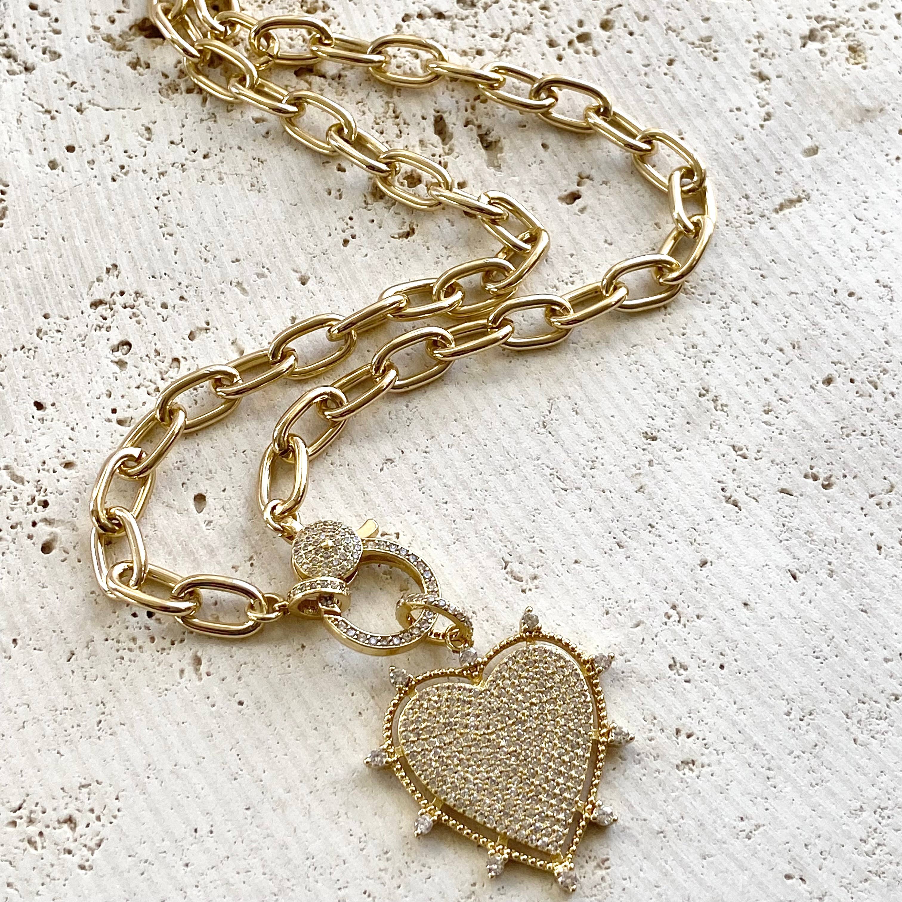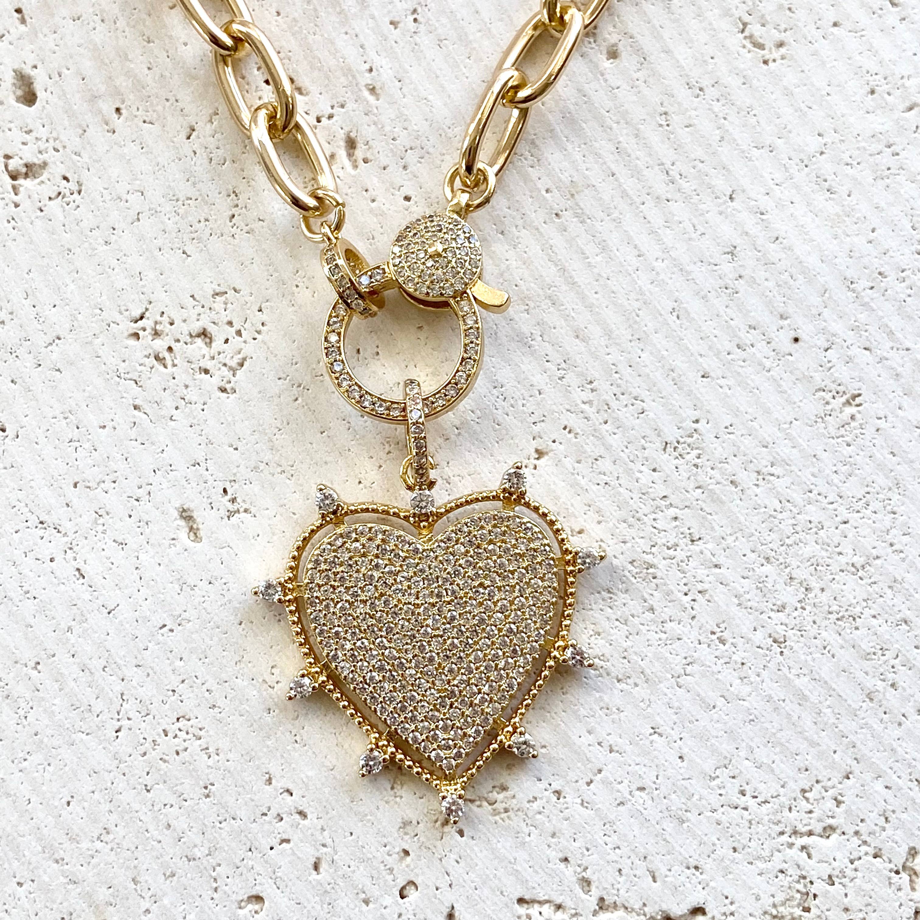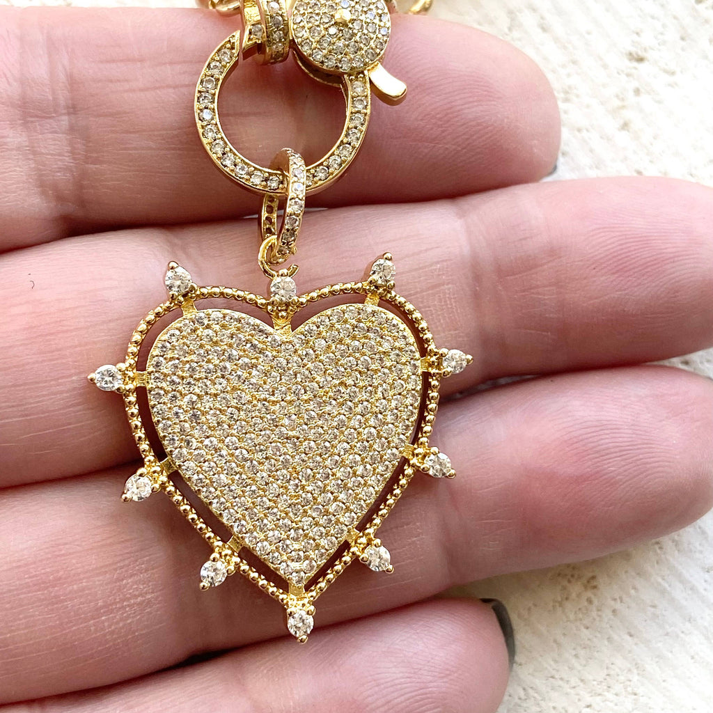 This beautiful, gold sparkly heart, necklaces features, tiny, micro, pave, clear crystals. The chain is made with non-tarnishing lightweight aluminum. Heart pendant is easily removable. Choose your length. Heart pendant is 30mm