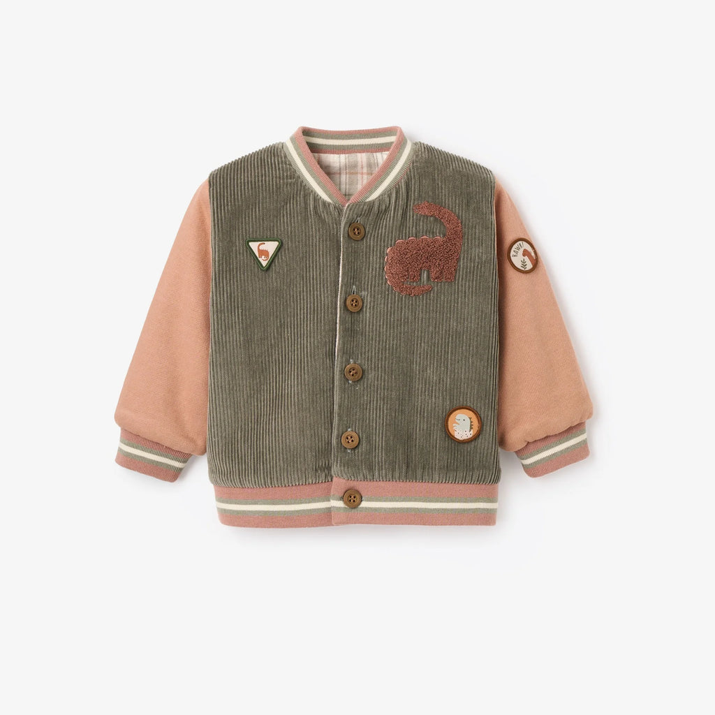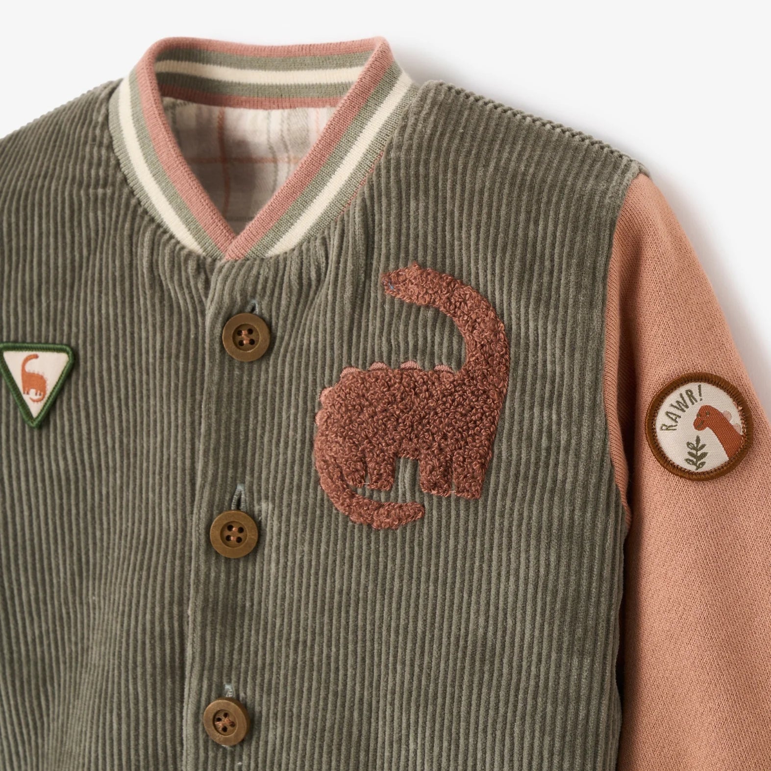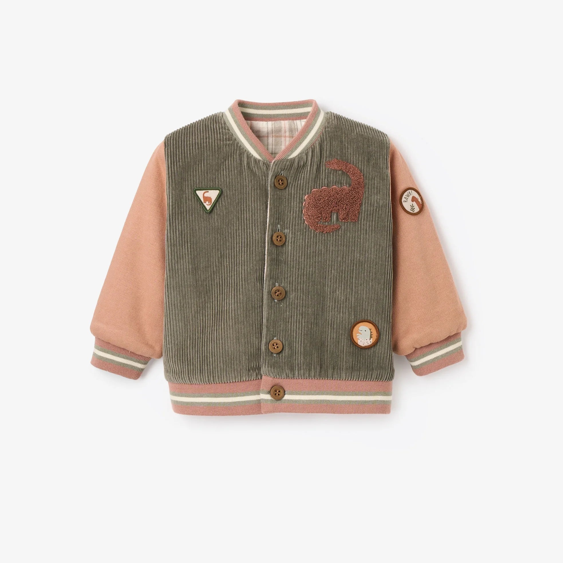 REVERSIBLE DINOSAUR CORDUROY/PLAID VARSITY JACKET - ELEGANT BABY
