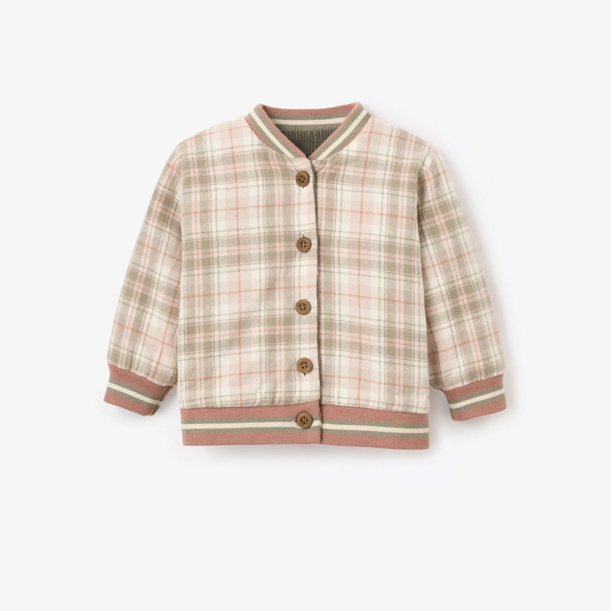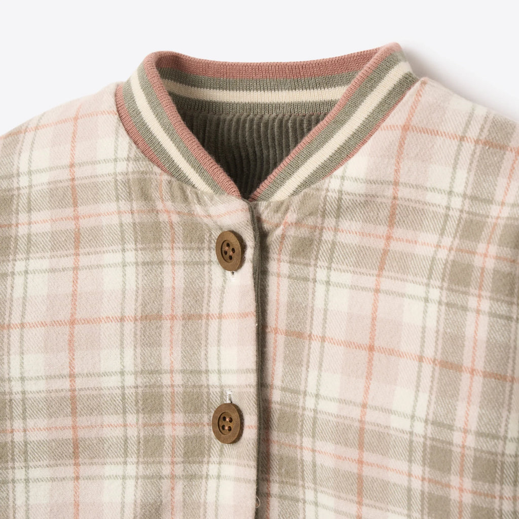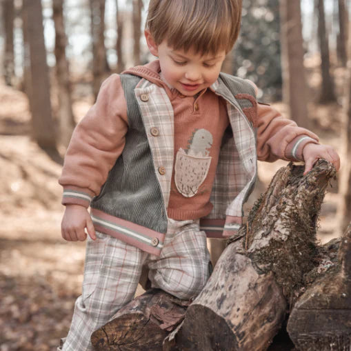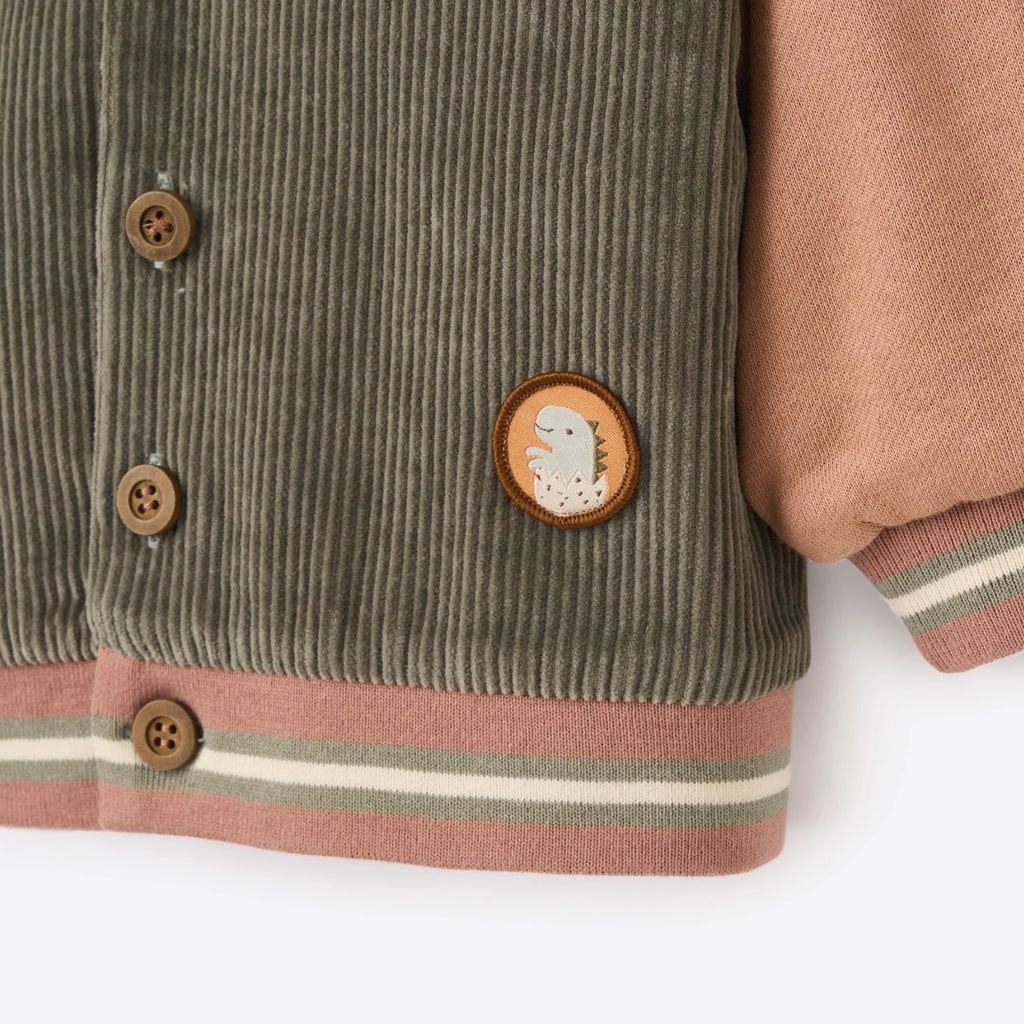 REVERSIBLE DINOSAUR CORDUROY/PLAID VARSITY JACKET - ELEGANT BABY
