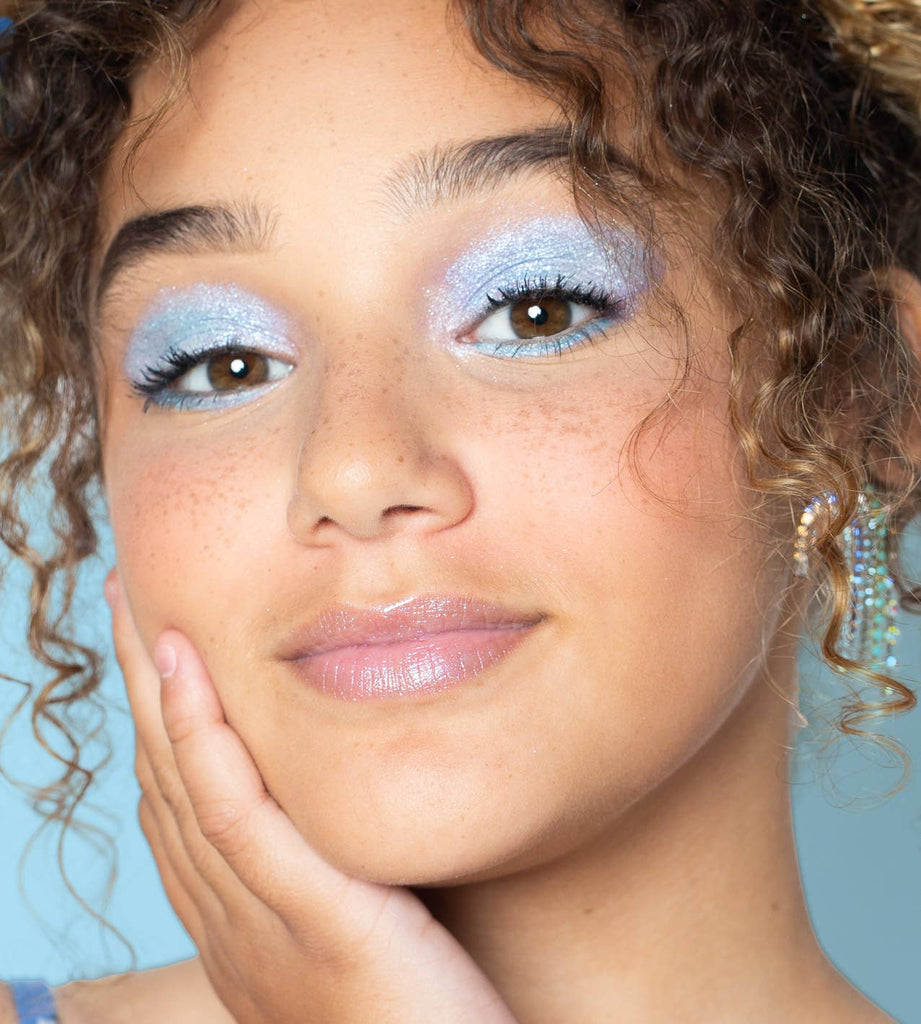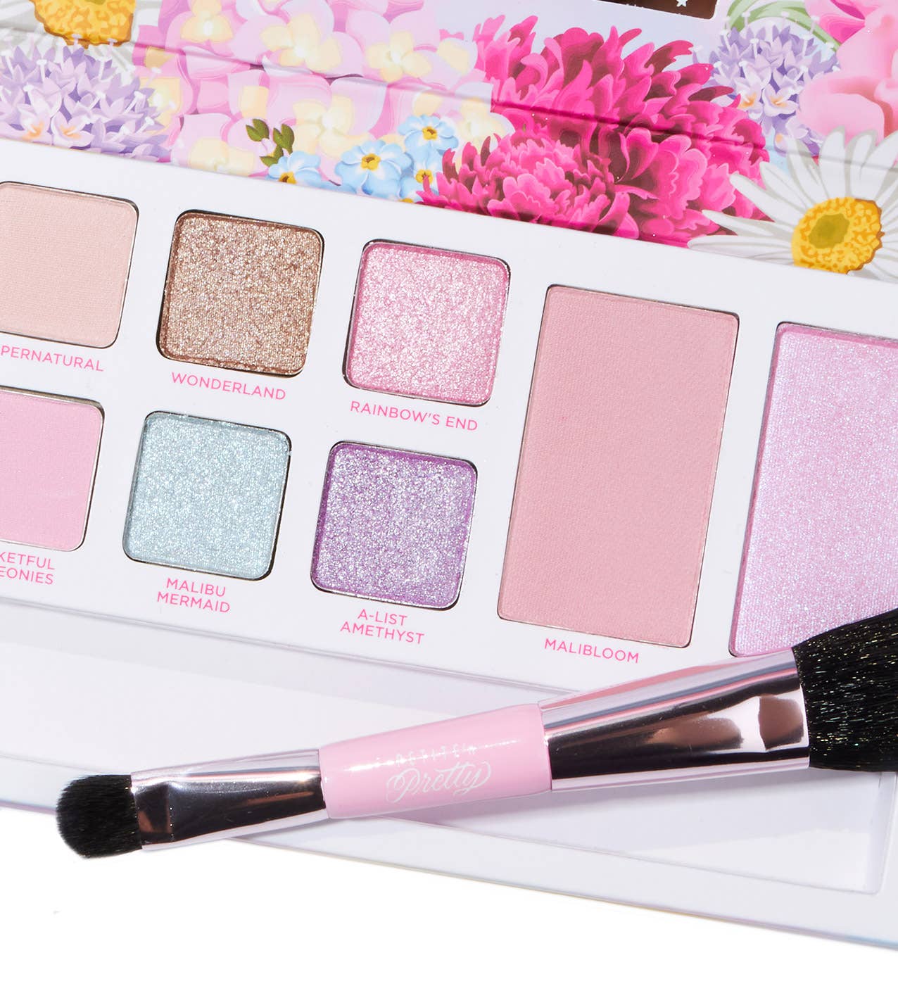 All the pigments of your imagination make up this fresh-picked bouquet of age appropriate eyeshadows in blooming pastels, plus a rose-garden pink blush and crystalline violet highlighter. The dual-ended synthetic brush swirls carefree color across the face so the only thing missing is your flower crown.