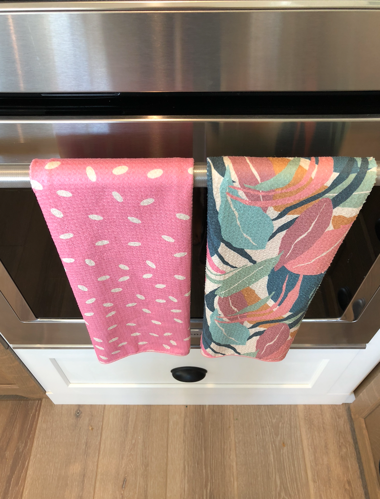 The perfect kitchen towel with gorgeous patterns on both sides. The towels waffle knit microfiber design makes it super absorbent, and our size makes them perfect for drying dishes, cleaning up spills, or wiping down your countertops. No more cleaning and drying with sub-par smelly towels, the quick-drying, absorbent features make this towel stand out above the crowd!