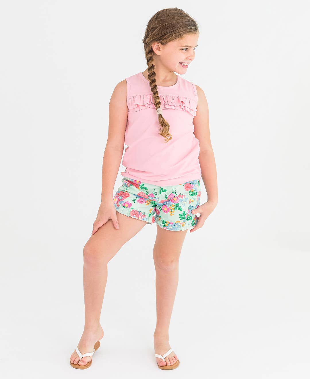 KIDS RUFFLE TRIM WOVEN SHORTS - RUFFLEBUTTS
