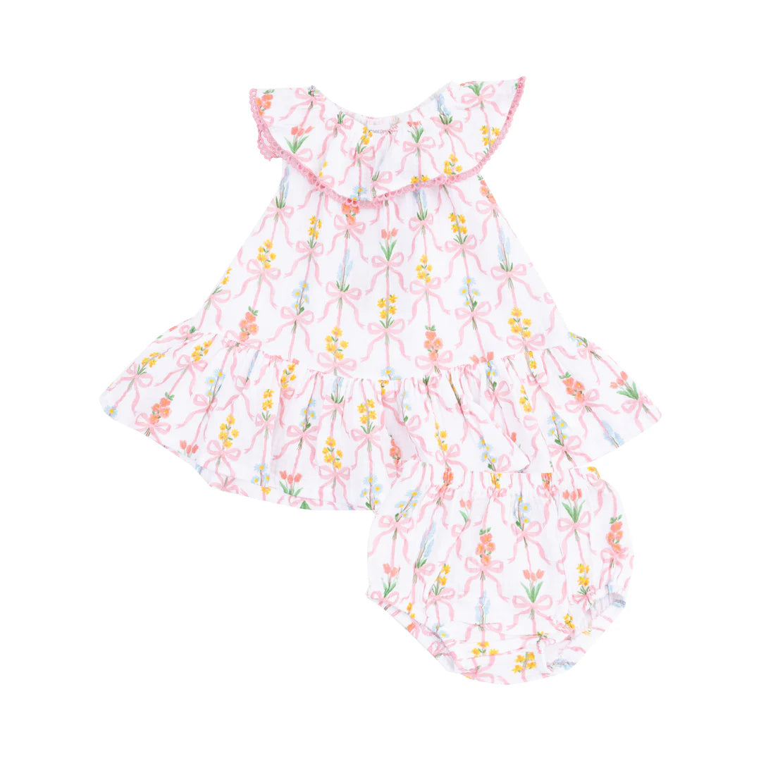 CIRCLE NECK RUFFLE DRESS + BLOOMER - RIBBON BOUQUETS