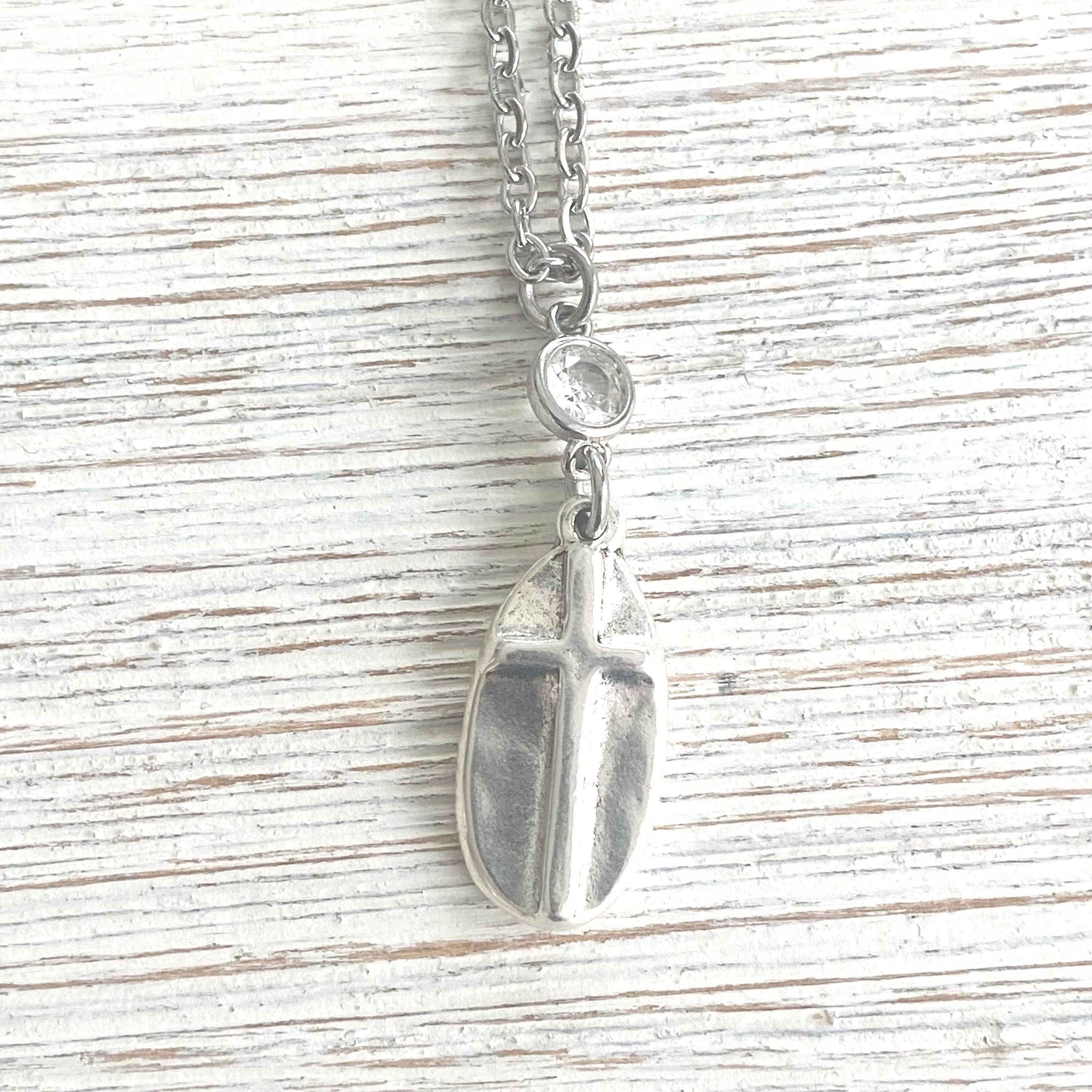 These 24mm cross charms are hand casted in the USA. They are on non-tarnishing stainless steel chain. They are 18 inches with a 2 inch extender. Choose your color(s) Studio Notes: M
