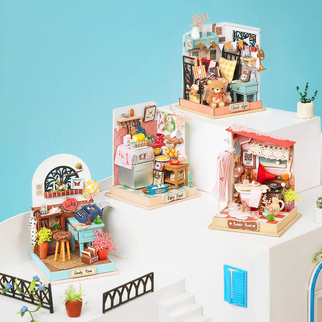 The study DIY Miniature Dollhouse kit is excellent for beginners.