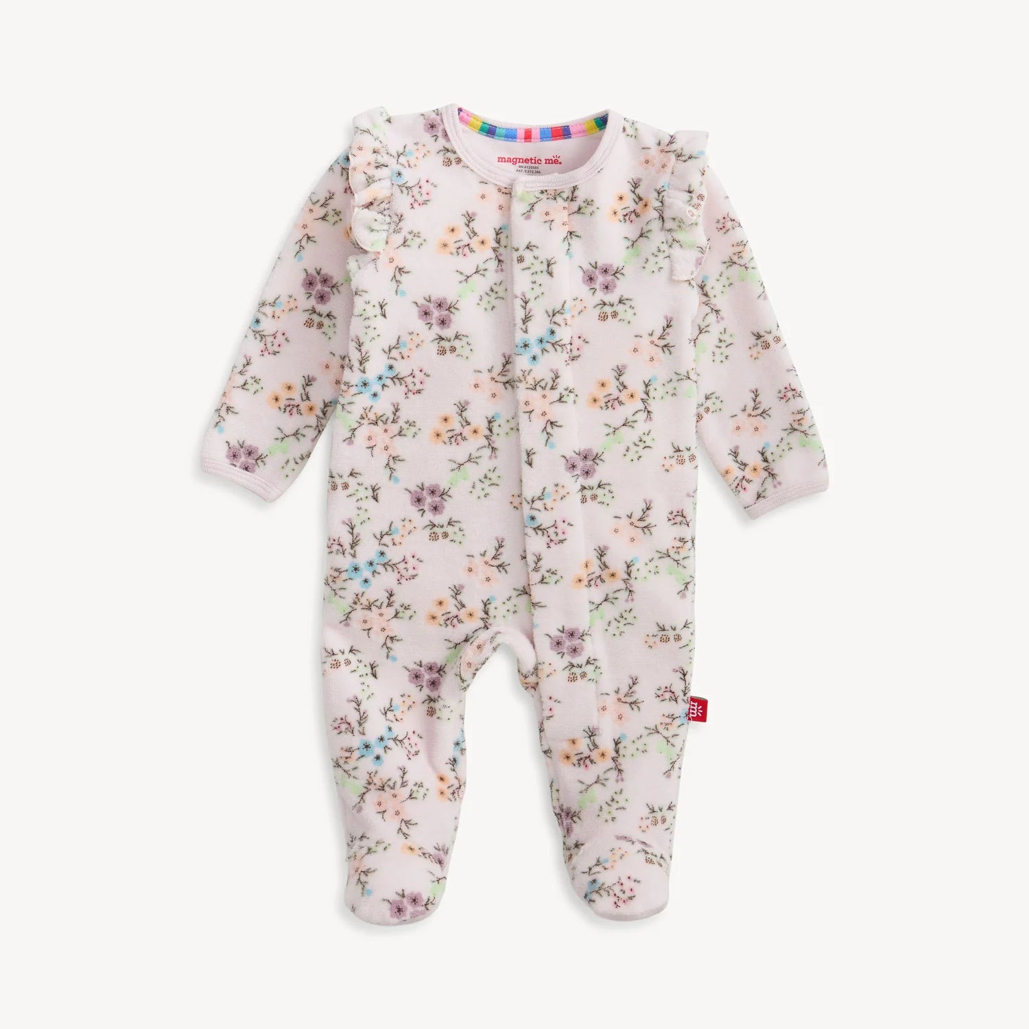 Our velour Footie, also known as a sleeper, gets baby warmed up and dressed quickly with magnetic closures down the front. It's the best outfit to wear when it gets chilly—soft, plush, and the perfect dose of cozy whether you’re at home or out and about.