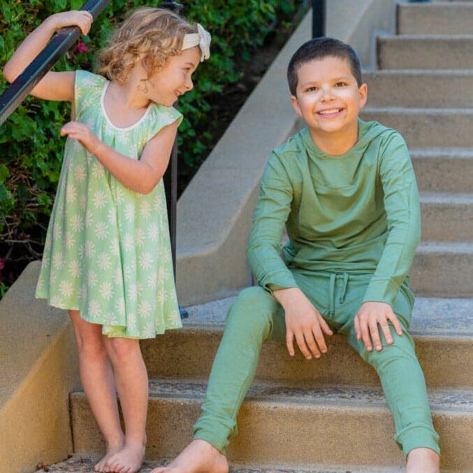 This bamboo jogger set will have you at hello with it's plush feel and perfect fit. Your little one will have style and comfort all day long. Perfect for matching and coordinating too!