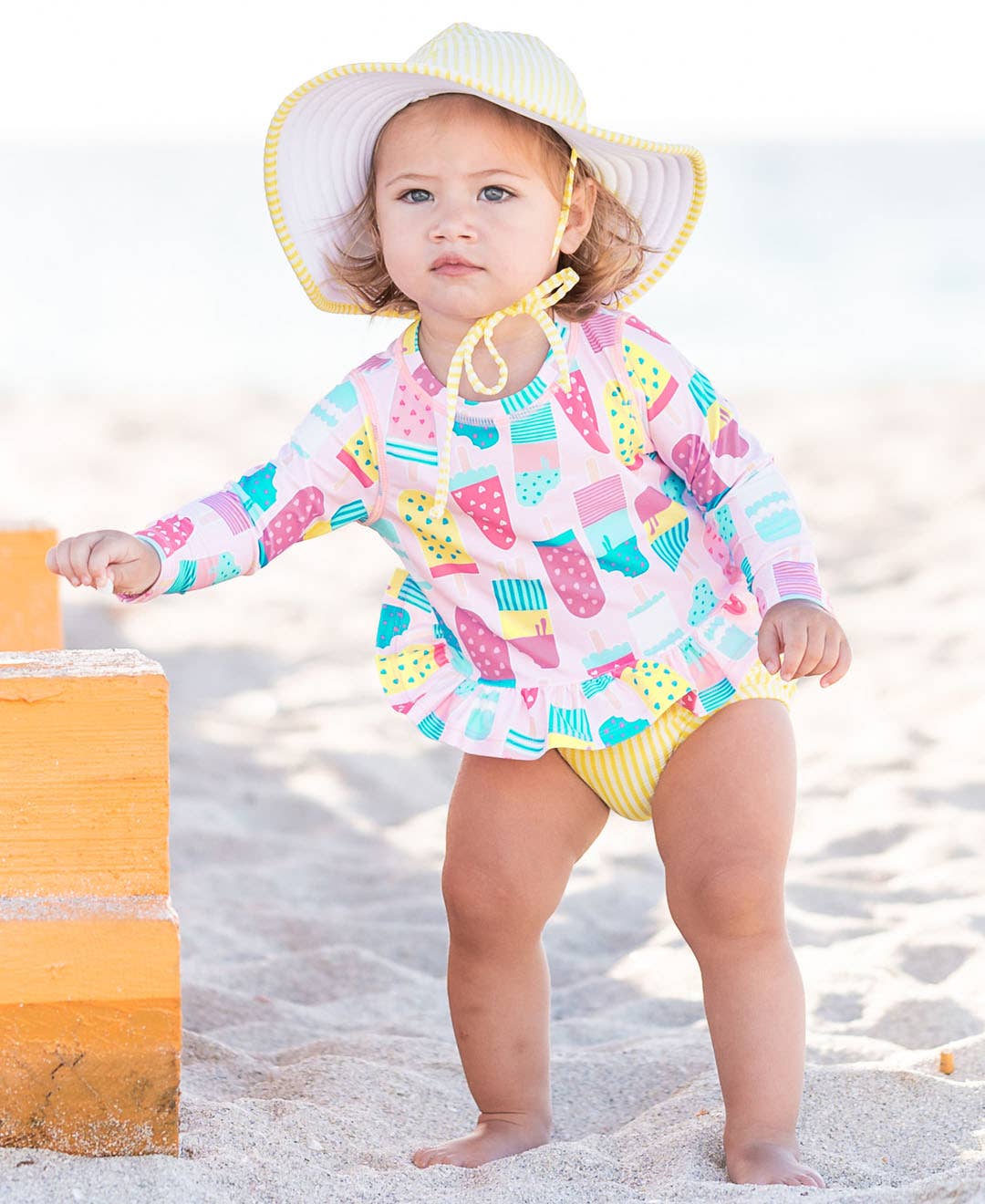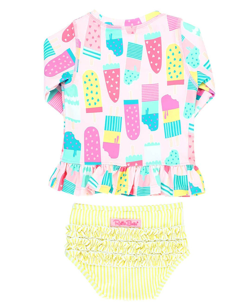 Girls Ice Cream Social Long Sleeve Ruffle Hem Rash Guard Bikini: 12-18m / Pink