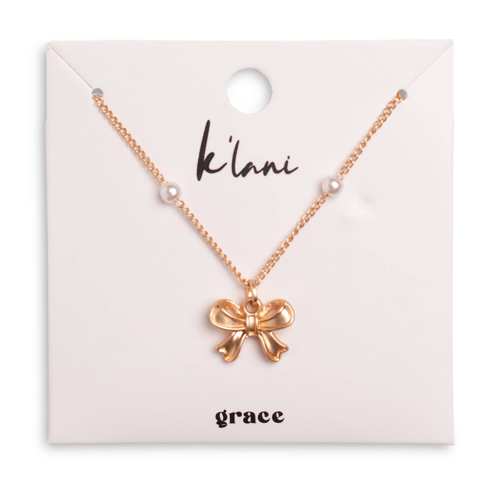 The Grace Necklace is beautifully crafted and adjustable from 16"-18". This is a gorgeous matte gold color with a dainty bow and pearls on the chain and will be the perfect necklace alone or layered with your other favorite necklaces. This coordinates with our Grace and Harmony hair tie bracelet set.