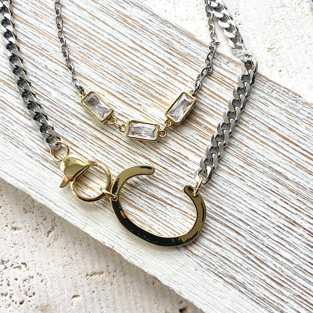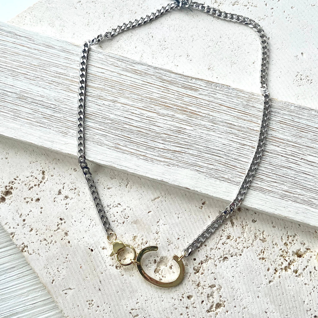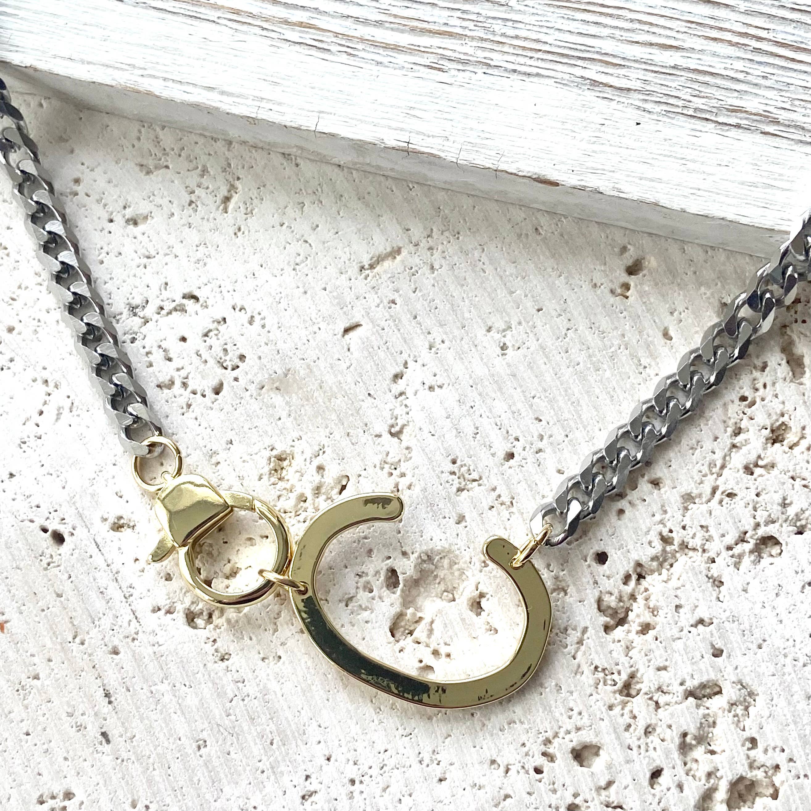 Initial statement mixed metal necklaces non tarnish jewelry: M