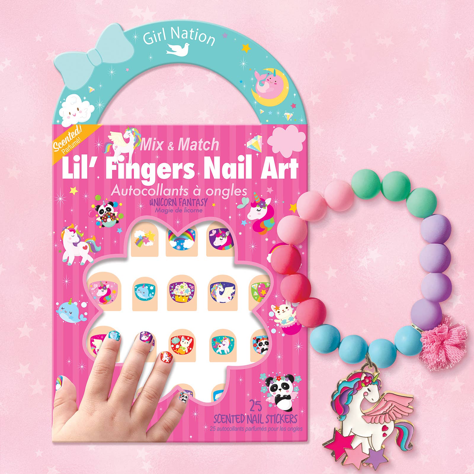 Gift pack includes the adorable Magical Unicorn bracelet and nail stickers in the Unicorn Fantasy design.