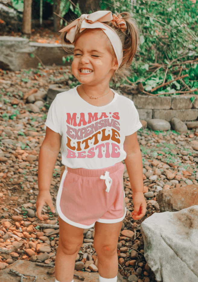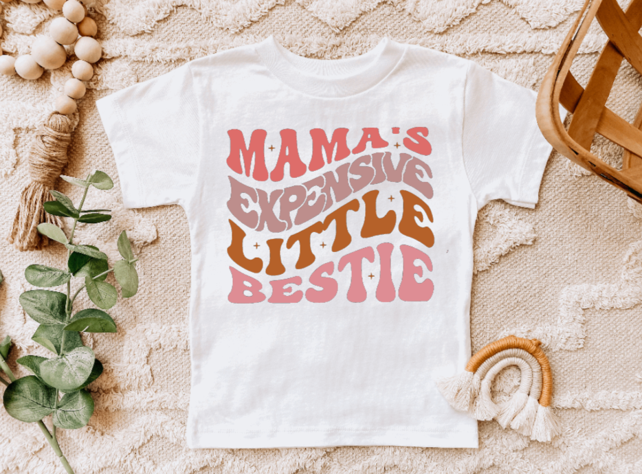 Mama's Expensive Little Bestie Retro Cute Kids T Shirt: Short Sleeve / 5T