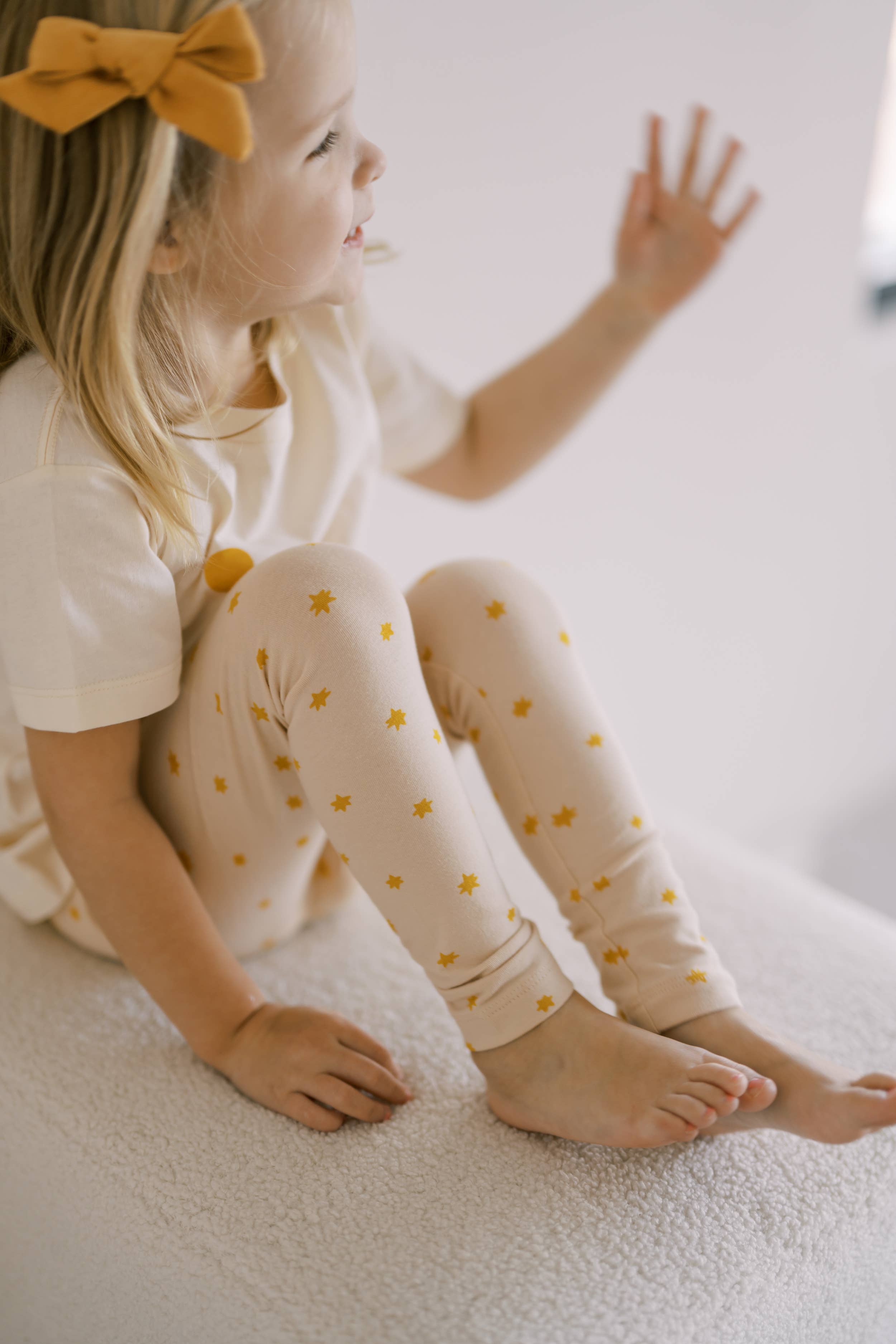 What's the most important thing when thinking about kids clothes? That they're cute, comfortable and ultra soft. Not only did we accomplish this with our gender neutral leggings, but we made sure they were ethically made with 100% Organic Cotton (and a hint of spandex) so your little one can live their best life everyday. We love how easy these bottoms are to style, making them the missing piece for casual outfit. Plus, we have these toddler clothes in all kids sizes (through youth medium), making them great for all ages. Pair them under a dress, with a cool tee, over a onesie or with a sweatshirt - they're versatile and simple with a green that everyone seems to love. The Deets: - Made of 95% Organic Cotton and 5% Spandex - Pre-Shrunk - Printed Tag on the Inside - Made in a GOTS Certified Factory - CPSIA Tested / Compliant - Designed by moms Photo is of the leggings themselves. They run true to size and are made to last so you can hand them down each and every year.