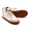 Let your little one shine in these Old Soles Girl's WOS High Top Casual Shoes! Made of gold leather with a cute pink star and stripe, these shoes also feature faux elastic laces that you don't have to tie. Perfect for a playful and stylish look.