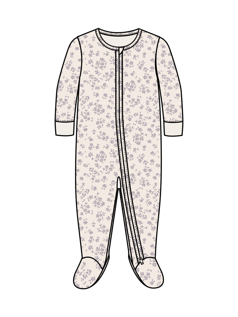 Organic Baby Peyton Footed Sleeper - Maria Floral / Lilla: 0-3M