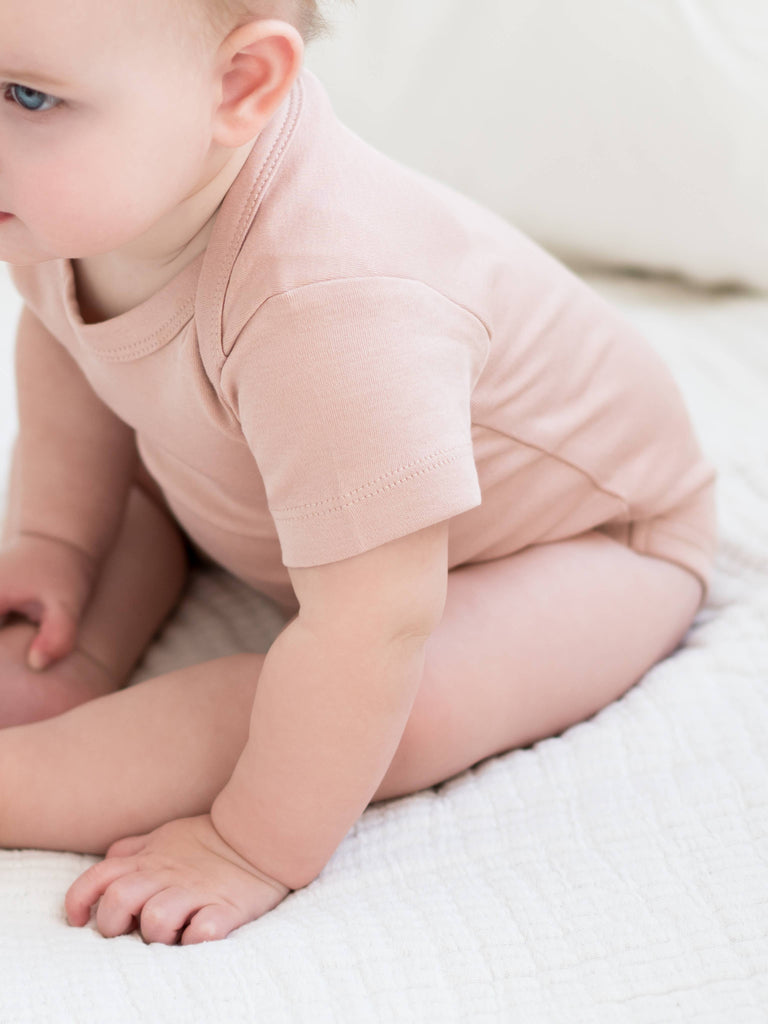 Our Short Sleeve Classic Baby Bodysuit is made from high-quality organic cotton interlock fabric to provide a finish that feels luxurious to the touch.