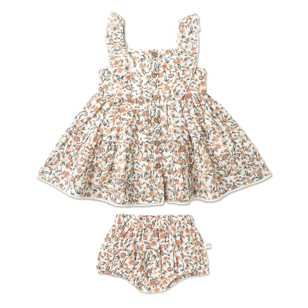 Organic Flutter Buttoned Tiered Dress - Magnolia: 5-6 Years