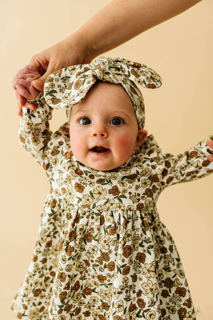 Little girls love to twirl, dance and explore. Make her first steps in style with this sweet dress that will be a staple piece in your little girl’s wardrobe. Made from soft knit for comfort and plenty of room for movement, it features a sweet neckline and ruffled sleeves perfect for any occasion! Note - Includes Bloomer up to 24M