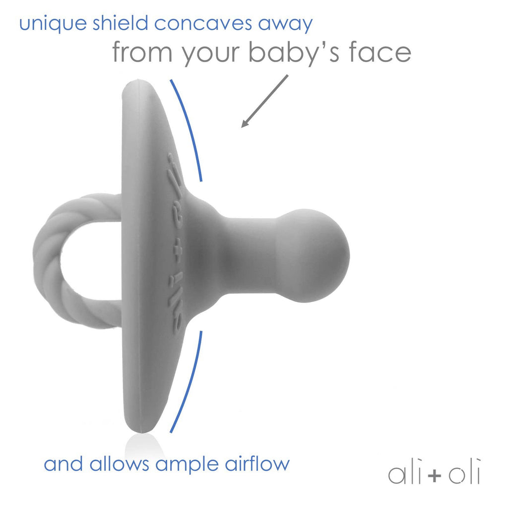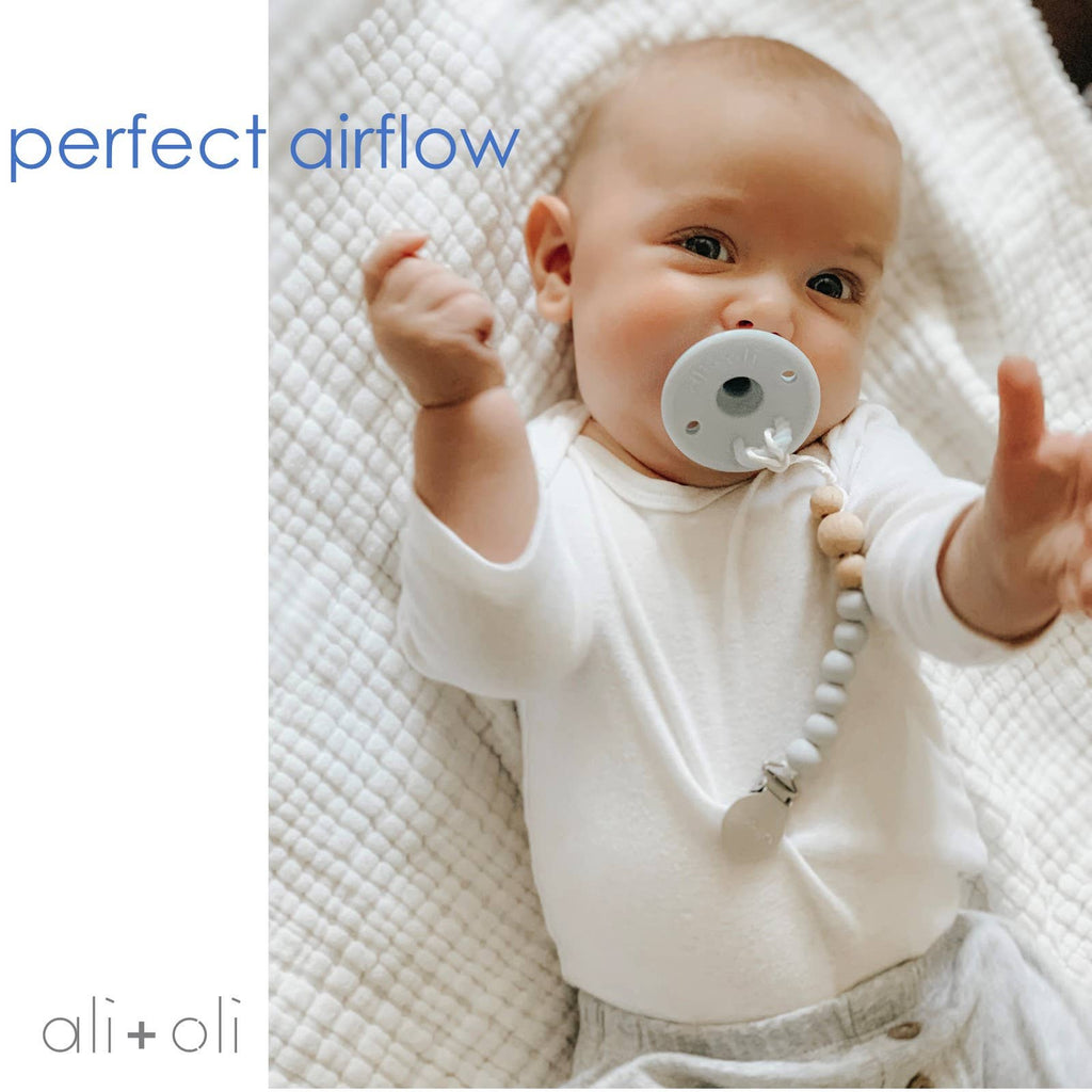 SOFT COLORS that match any outfit or bibs. A pacifier that's stylish clean & modern for baby