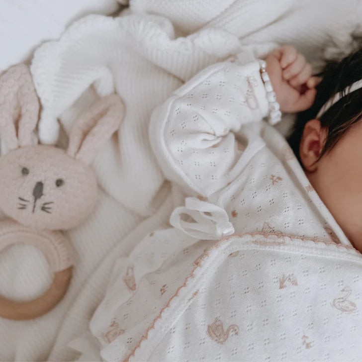 PINK SWAN PRINT ORGANIC COTTON POINTELLE LAYETTE 3 PC GIFT SET