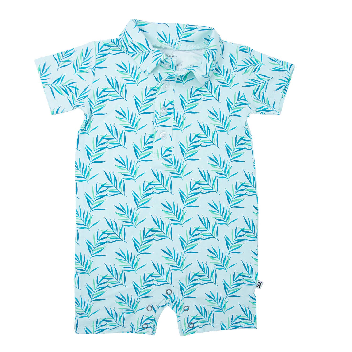 Polo Romper - Palms Blue: Palms Blue / 3-6 Months