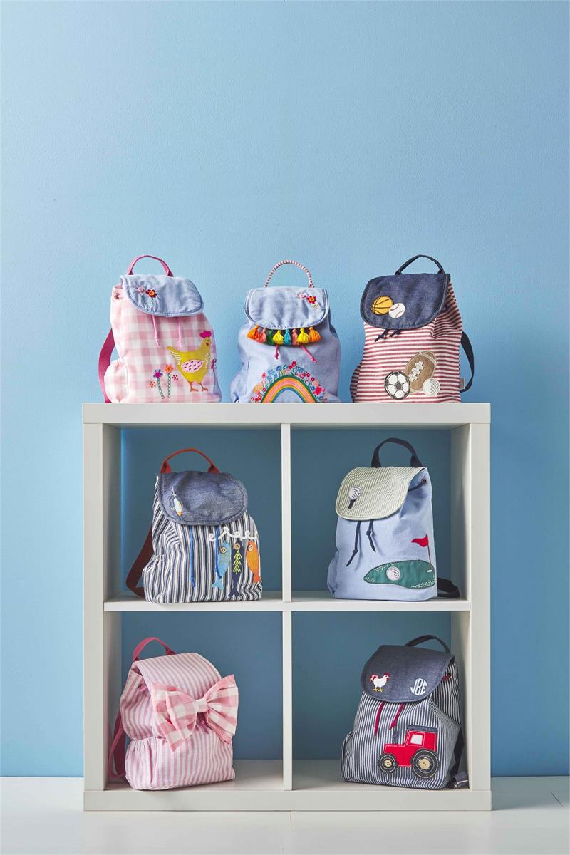 Our drawstring rainbow backpack is a perfect bag for school outings! The appliqued oxford backpack features a drawstring. The backpack features a snap top closure with flap. The backpack also has a canvas I.D. patch. The backpack can be adjusted to fit your little one as the bag has adjustable straps.