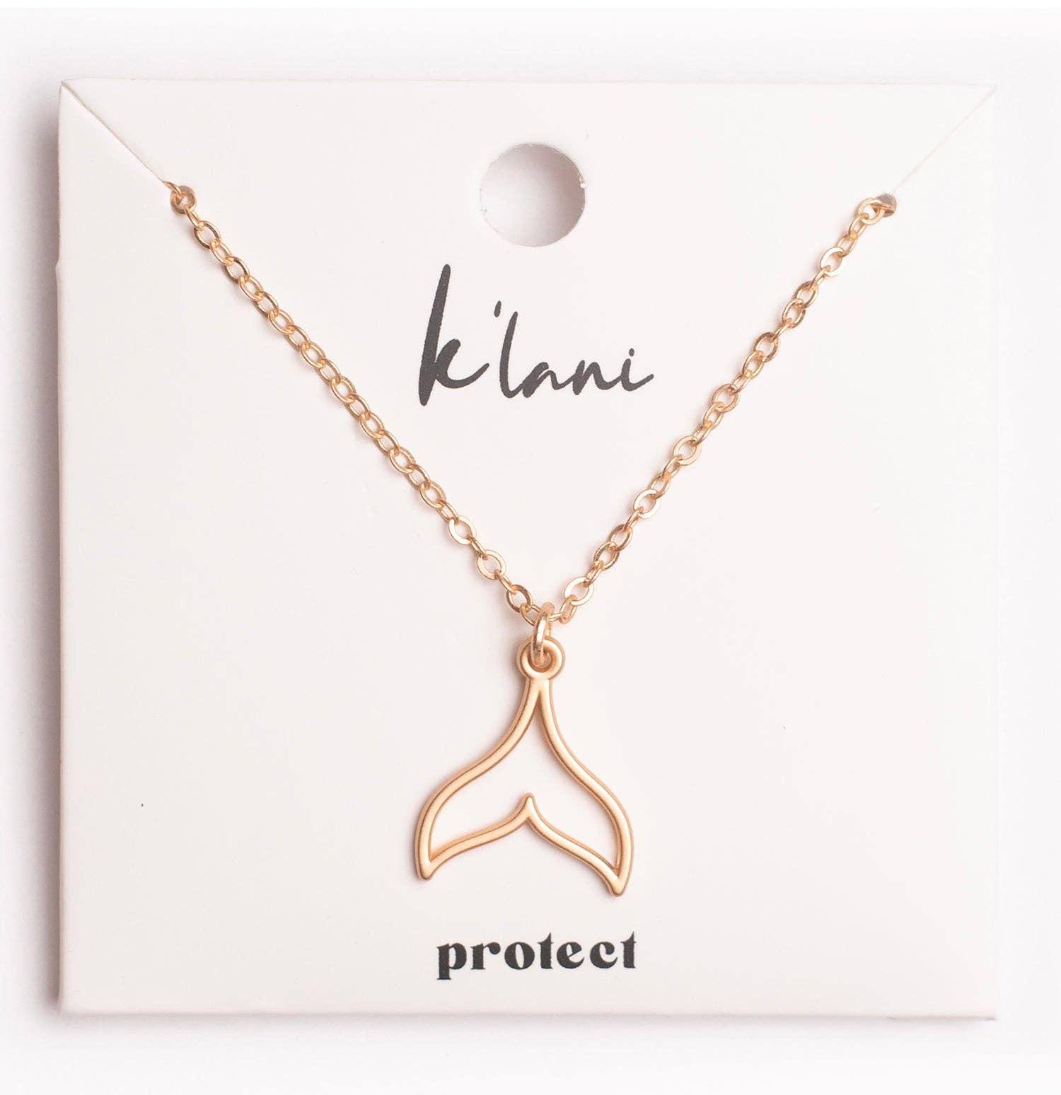 The Protect Necklace is beautifully crafted and adjustable from 16"-18". This is a gorgeous matte gold color and will be the perfect necklace alone or layered with your other favorite necklaces. You will love the perfect sized whale tale hanging from the sturdy chain.  This coordinates with our Protect hair tie bracelet set.