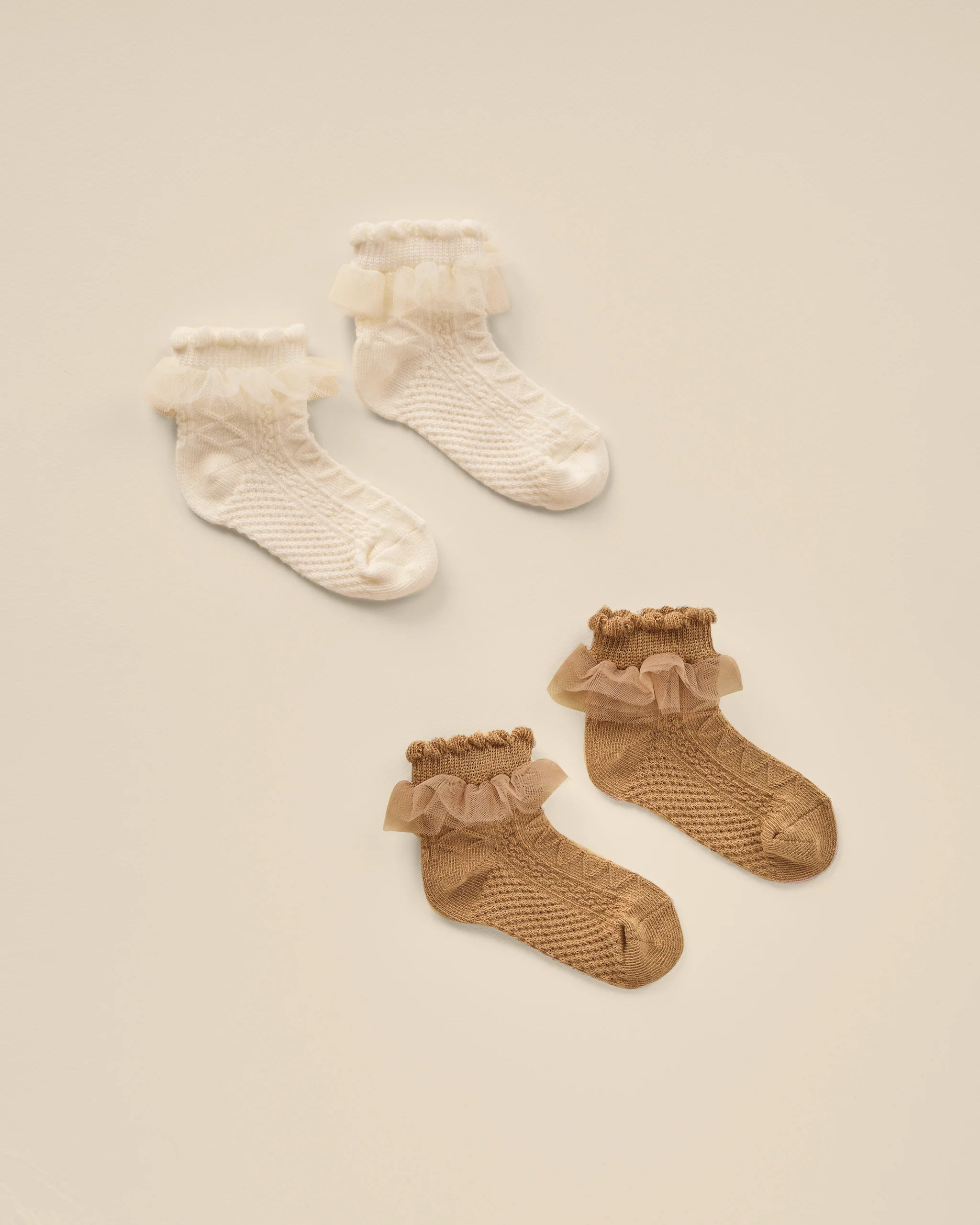 RUFFLE SOCKS || IVORY, GOLDEN - NORALEE
