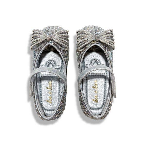 Introducing the S99555 Pearl Bowtie Flat Shoes from Doe a Dear, a trendy yet comfortable footwear choice for your little fashionista. Available in two charming colors, these flats feature a dainty pearl bowtie, adding a touch of elegance to any outfit. Designed in the heart of Los Angeles, we ensure high quality and style in every pair. Perfect for all occasions, these shoes are a must-have in your child's wardrobe. Let your child step out in style with Doe a Dear.