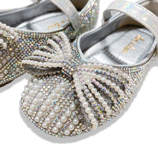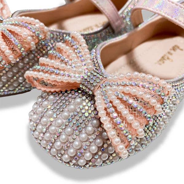 Introducing the S99555 Pearl Bowtie Flat Shoes from Doe a Dear, a trendy yet comfortable footwear choice for your little fashionista. Available in two charming colors, these flats feature a dainty pearl bowtie, adding a touch of elegance to any outfit. Designed in the heart of Los Angeles, we ensure high quality and style in every pair. Perfect for all occasions, these shoes are a must-have in your child's wardrobe. Let your child step out in style with Doe a Dear.