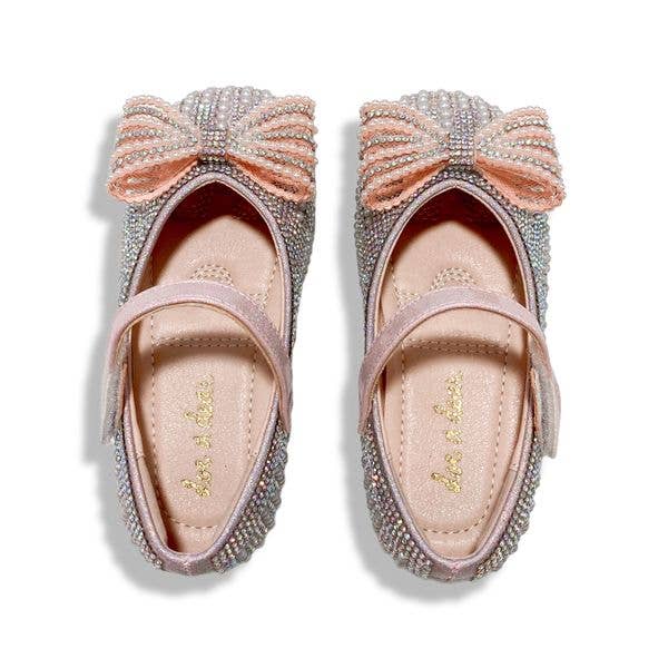 Introducing the S99555 Pearl Bowtie Flat Shoes from Doe a Dear, a trendy yet comfortable footwear choice for your little fashionista. Available in two charming colors, these flats feature a dainty pearl bowtie, adding a touch of elegance to any outfit. Designed in the heart of Los Angeles, we ensure high quality and style in every pair. Perfect for all occasions, these shoes are a must-have in your child's wardrobe. Let your child step out in style with Doe a Dear.