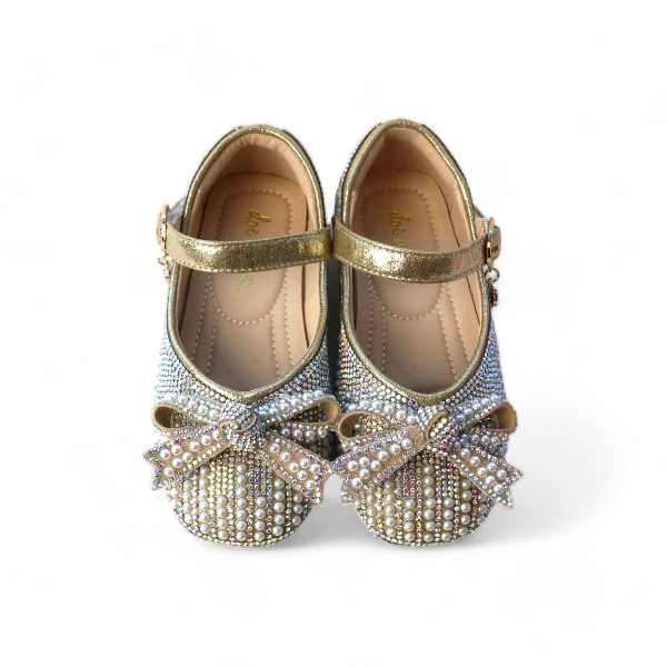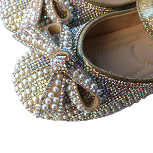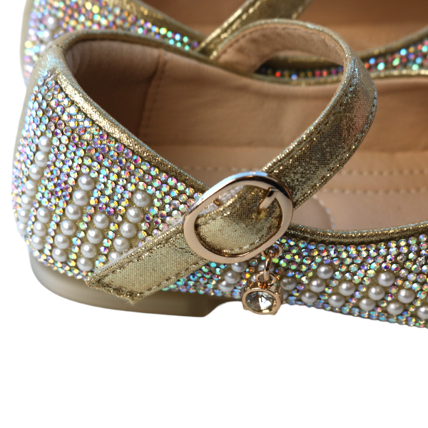 S9991 Pearl & Rhinestone Flat Shoes (3 COLORS): GOLD / EUR22/US6