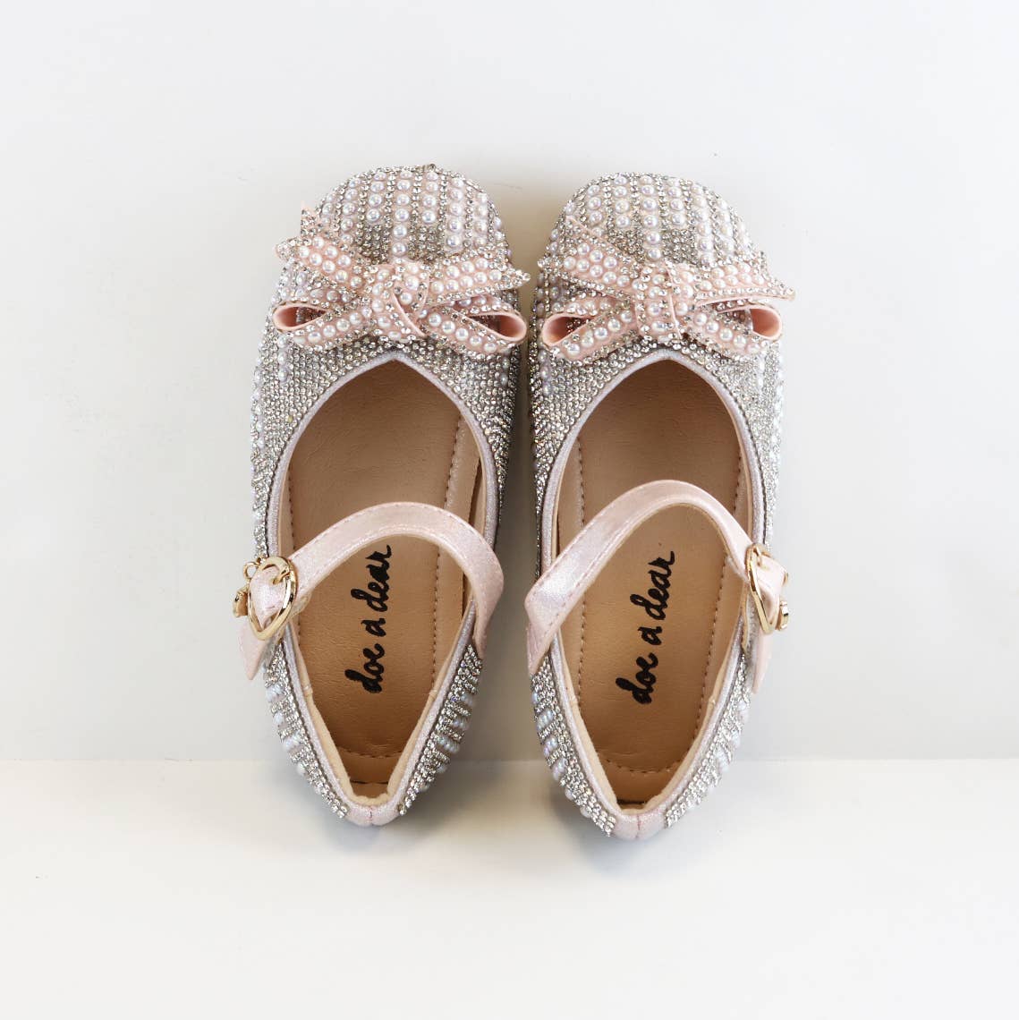 Indulge your child's style with Doe a Dear's S9991 Pearl & Rhinestone Flat Shoes, available in three vibrant colors. These flats are not just ordinary footwear, they're an accessory that adds sparkle to any outfit. Located in the heart of Los Angeles, our brand strives to bring fashion-forward styles to our young fashionistas. Our Pearl & Rhinestone Flat Shoes are a testament to our commitment to style and quality.
