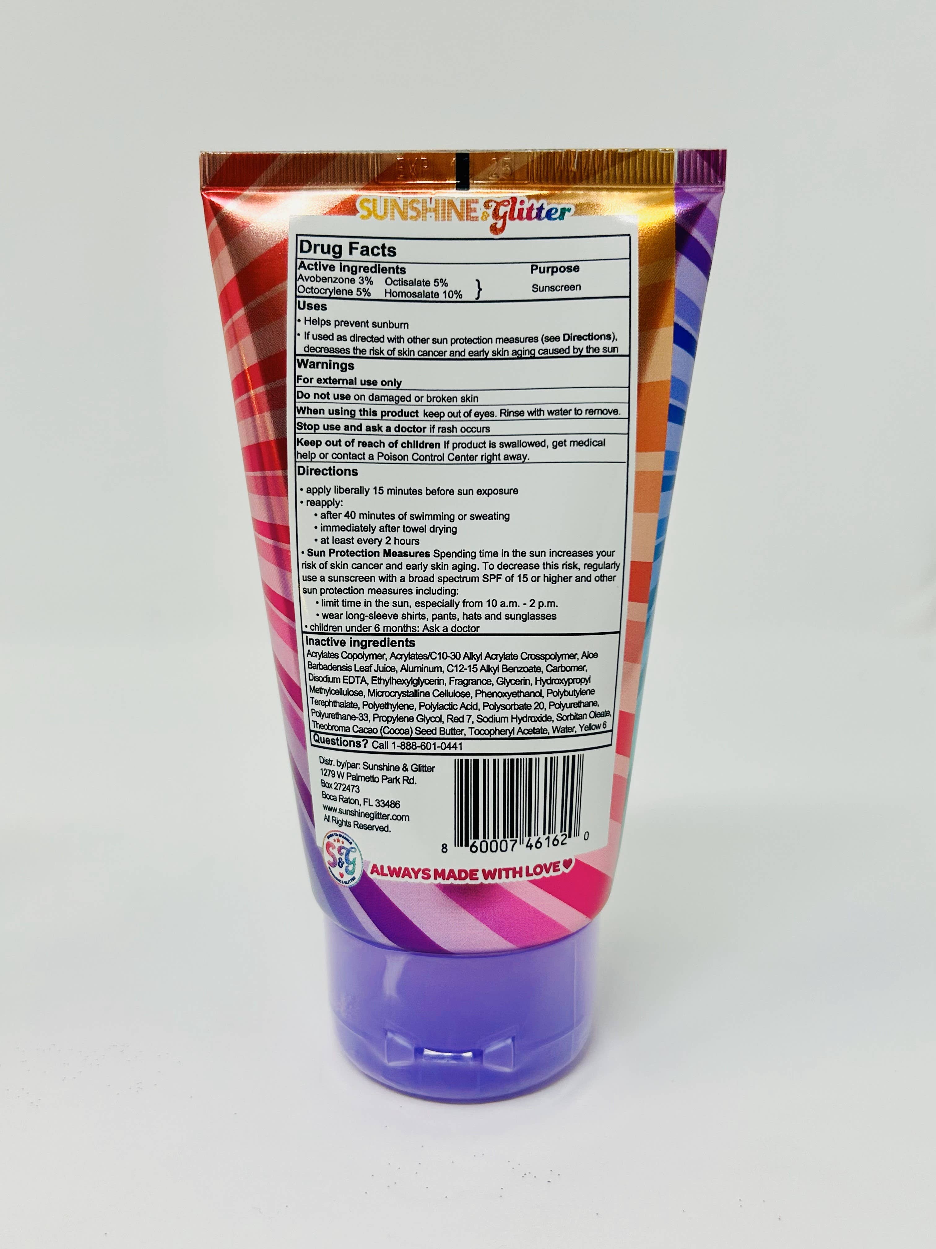 Paba and paraben-free, non-irritant glitter and smells delicious. Fabulous skin protection as fun and amazing as you are.