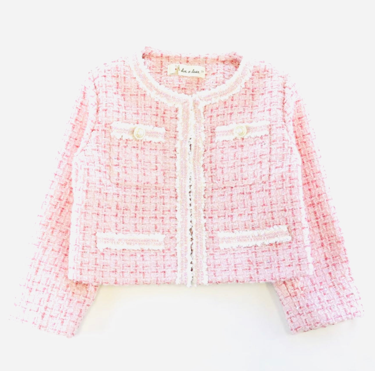 SEQUIN TRIM TWEED JACKET - PINK