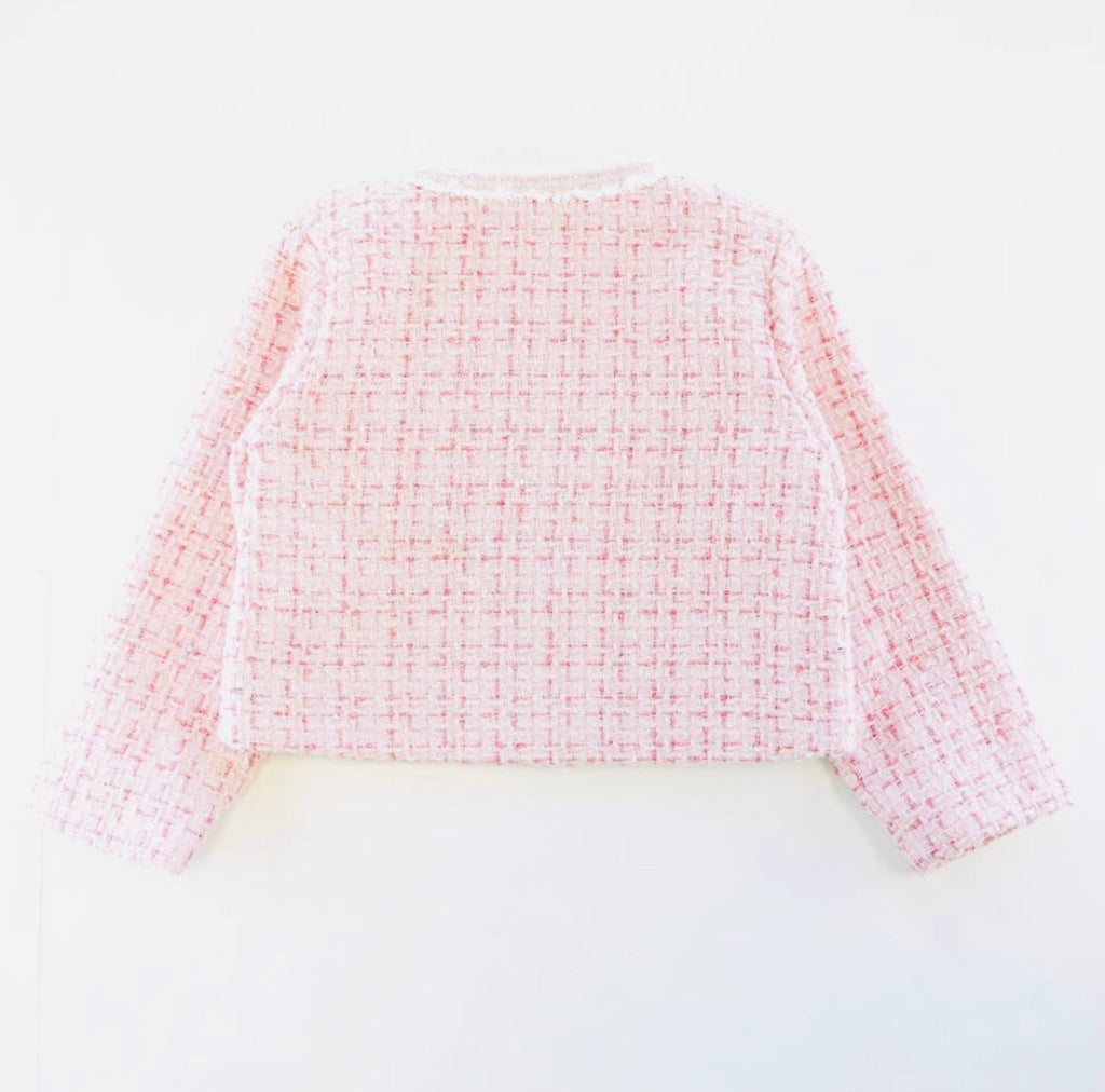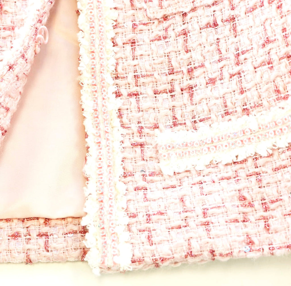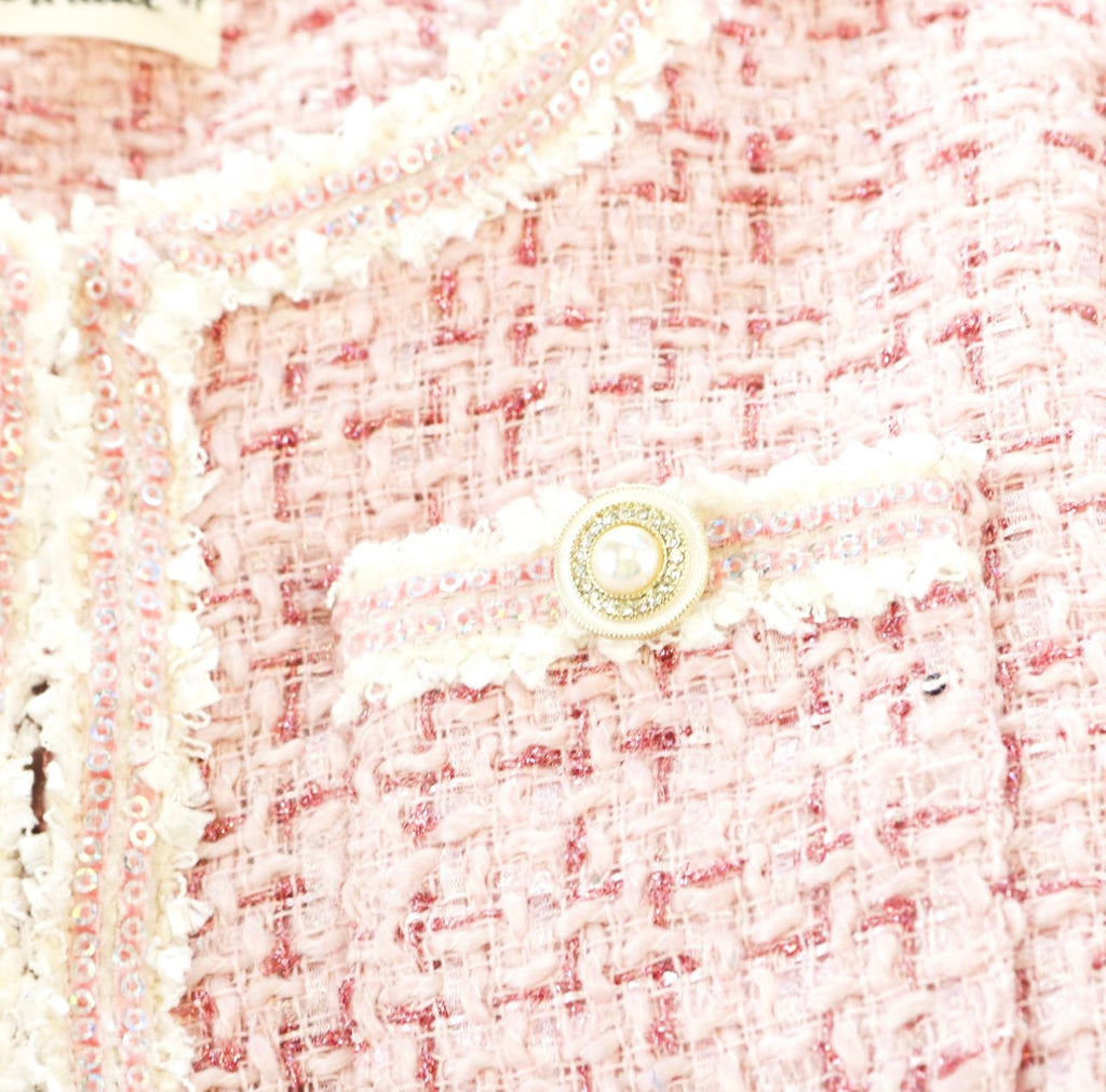 Sequin Trim Tweed Jacket - Pink