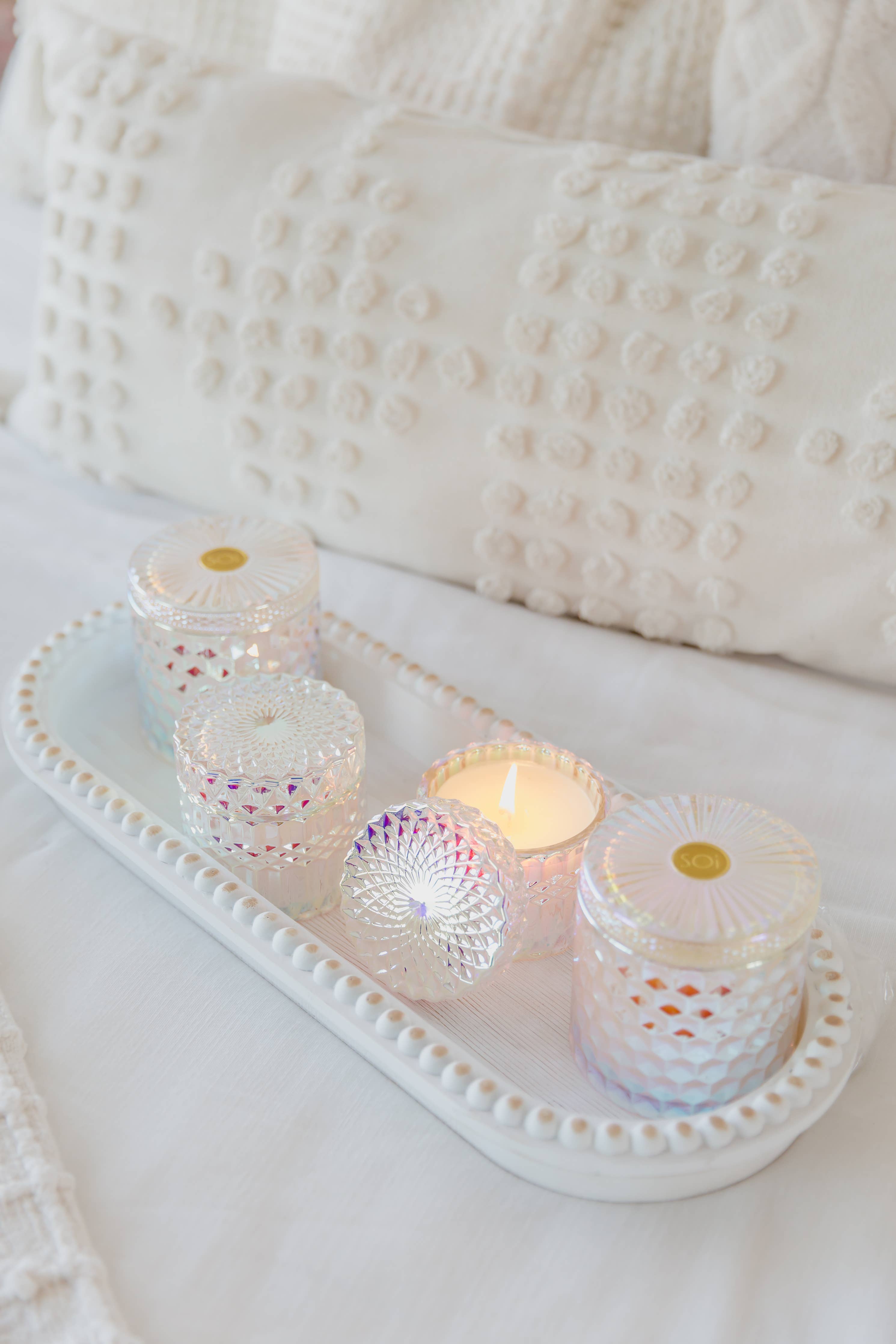 Sparkling Vanille 8oz Petite Shimmer Candle. Fragrance Notes: warm, sparkling vanilla sugar.