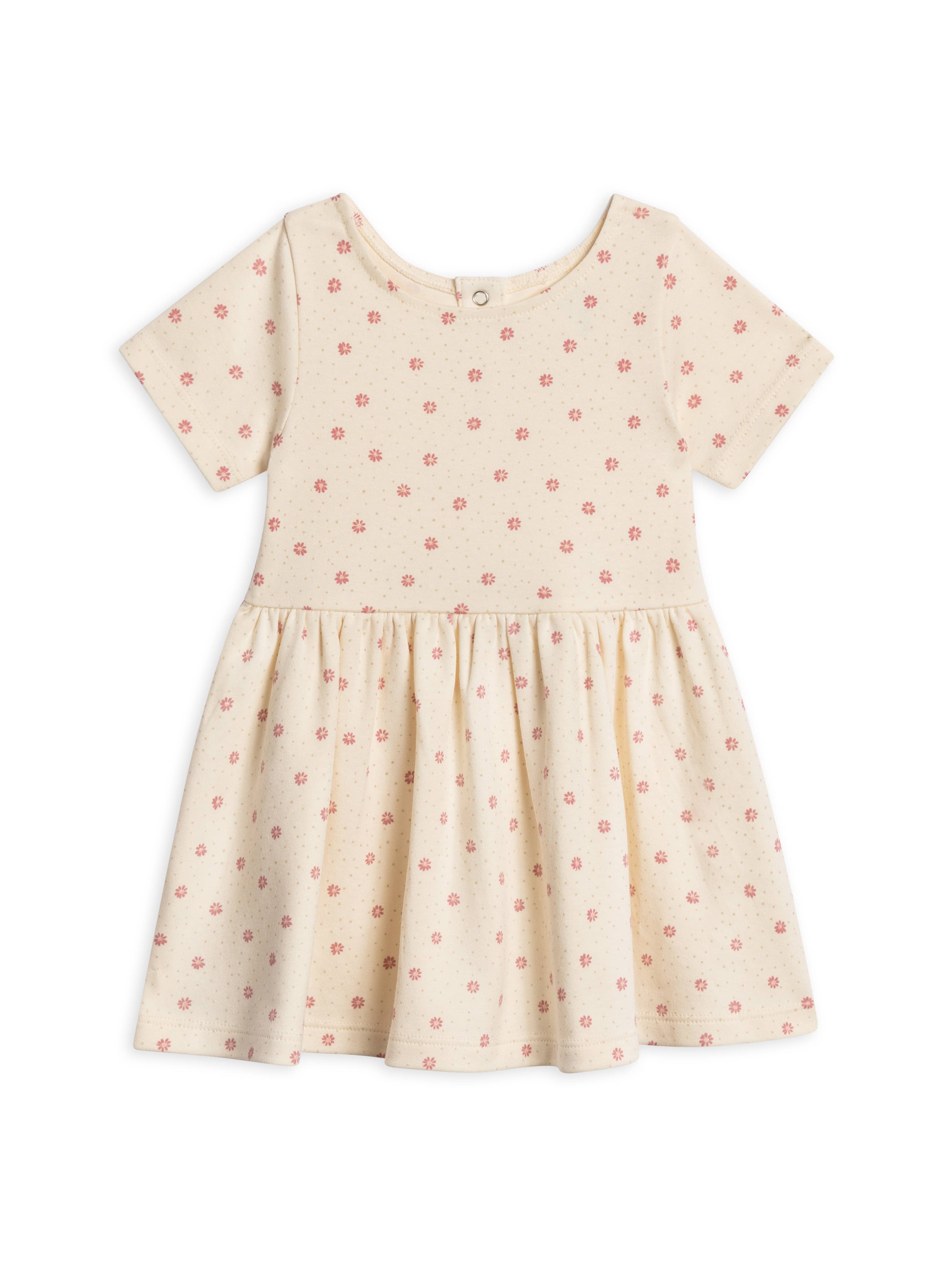 Our fan favorite swing dress now with an updated fit! Newly redesigned with a relaxed body fit and fuller skirt, the Stella is made perfect for warmer weather with short sleeves! Infant sizes include a matching diaper cover and snap closure on the back. Made of 100% organic cotton Interlock fabric Nickel-free snaps Infant diaper cover with elastic waist and leg openings Water-based dyes ensuring long-lasting color vibrancy and durability Sustainably sourced and ethically produced Naturally hypoallergenic Machine Wash Cold