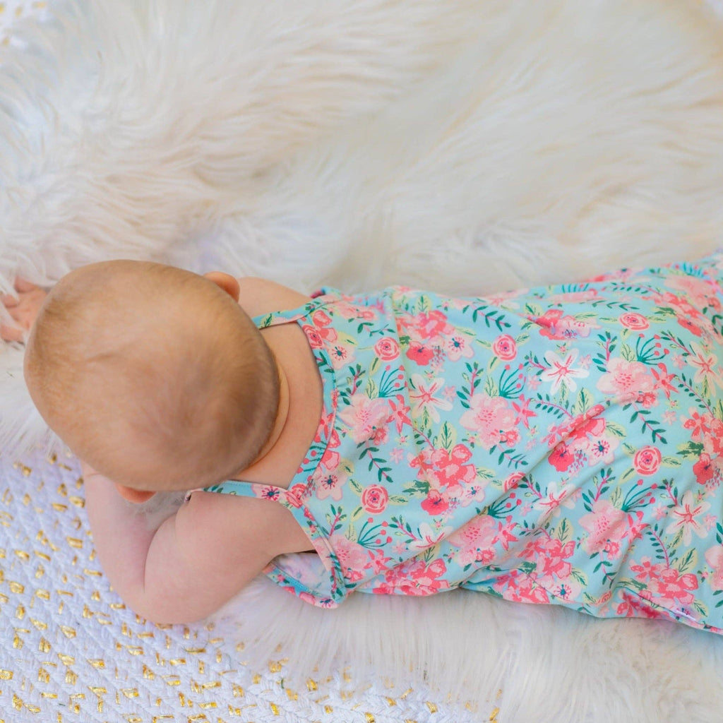 Tank Pant Romper - Aqua Floral: Aqua Floral / Girl / 12-18 Months