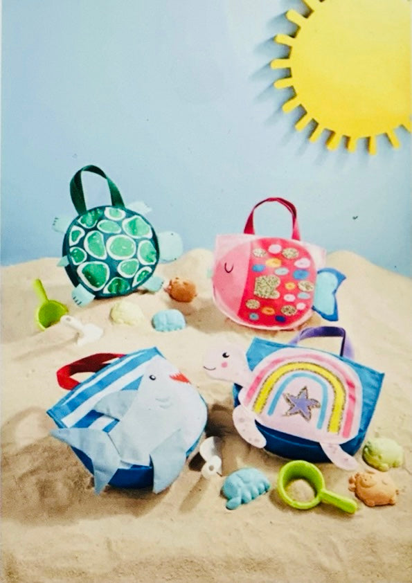 Our Turtle Sand Toy Tote Set is the perfect accessory to take trips to the seashore. The six piece set comes with an appliqued nylon beach tote. The tote features a turtle shape. The tote holds three sand molds and two sand scoops - making it the perfect play set for the beach.