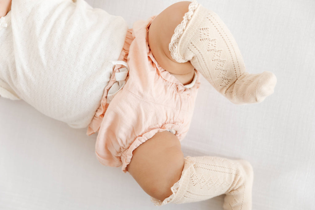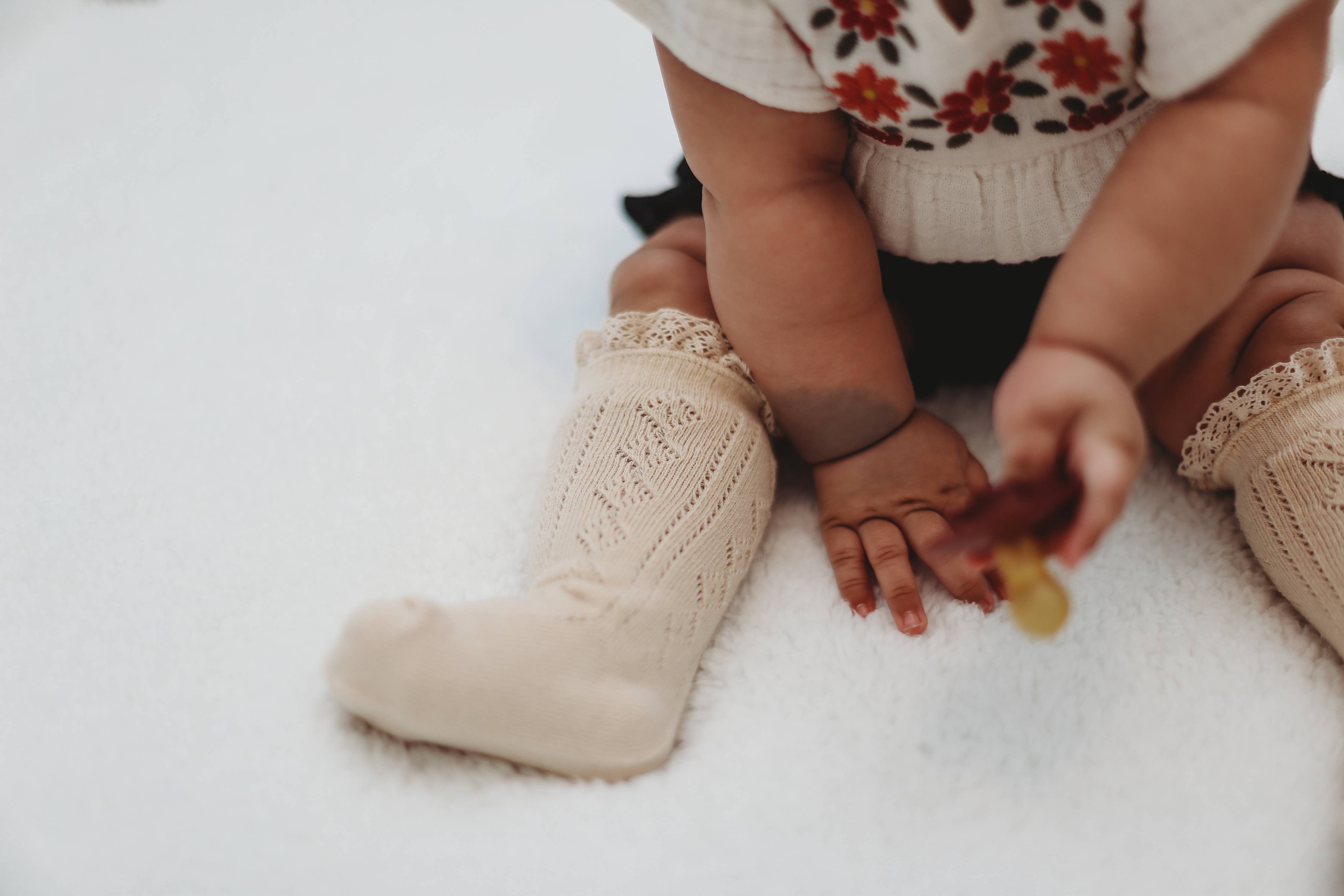 Vanilla Fancy Lace Top Knee Highs for babies, toddlers and girls! Our customer favorite fancy mesh is back and available in an all new style! Fancy Knee Highs! These vintage inspired fancy knee high socks are perfect for all of her girlhood adventures. Machine wash cold with like colors. Tumble dry low or lay flat to dry. 76% cotton / 22% polyester / 2% spandex Imported.